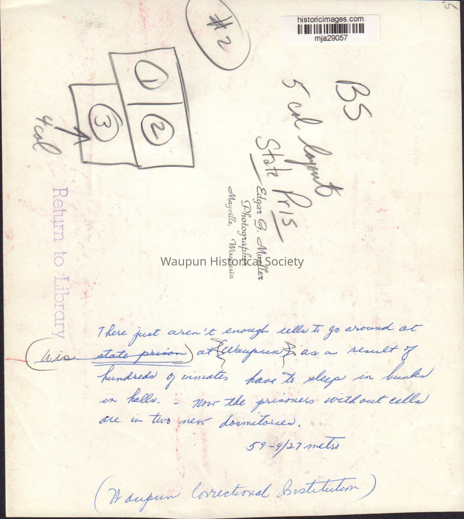 Photograph, Corrections, Wisconsin State Prison, DormitoryEntry/Object ID