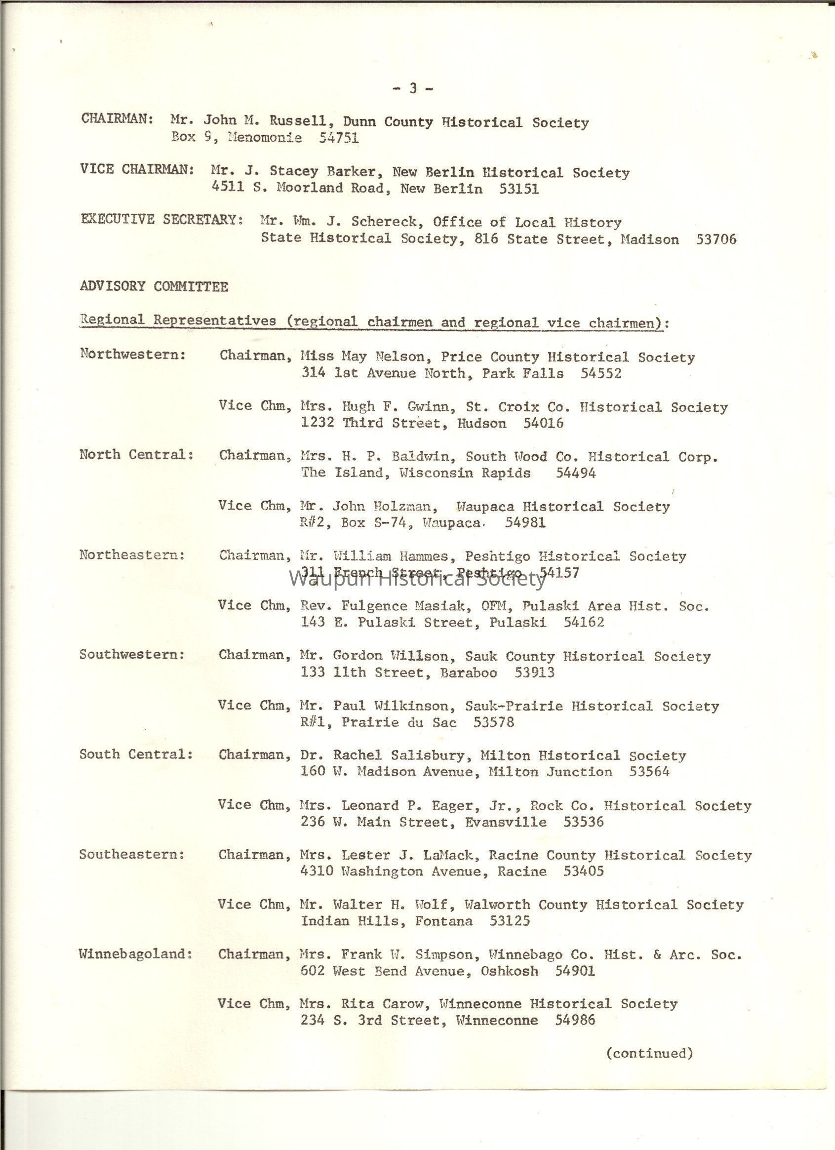 It is the roster of the Historical Socities and index and convention Schedule for 1974 and regional roster also the Map of the region they are list alphabetically.Acquisition