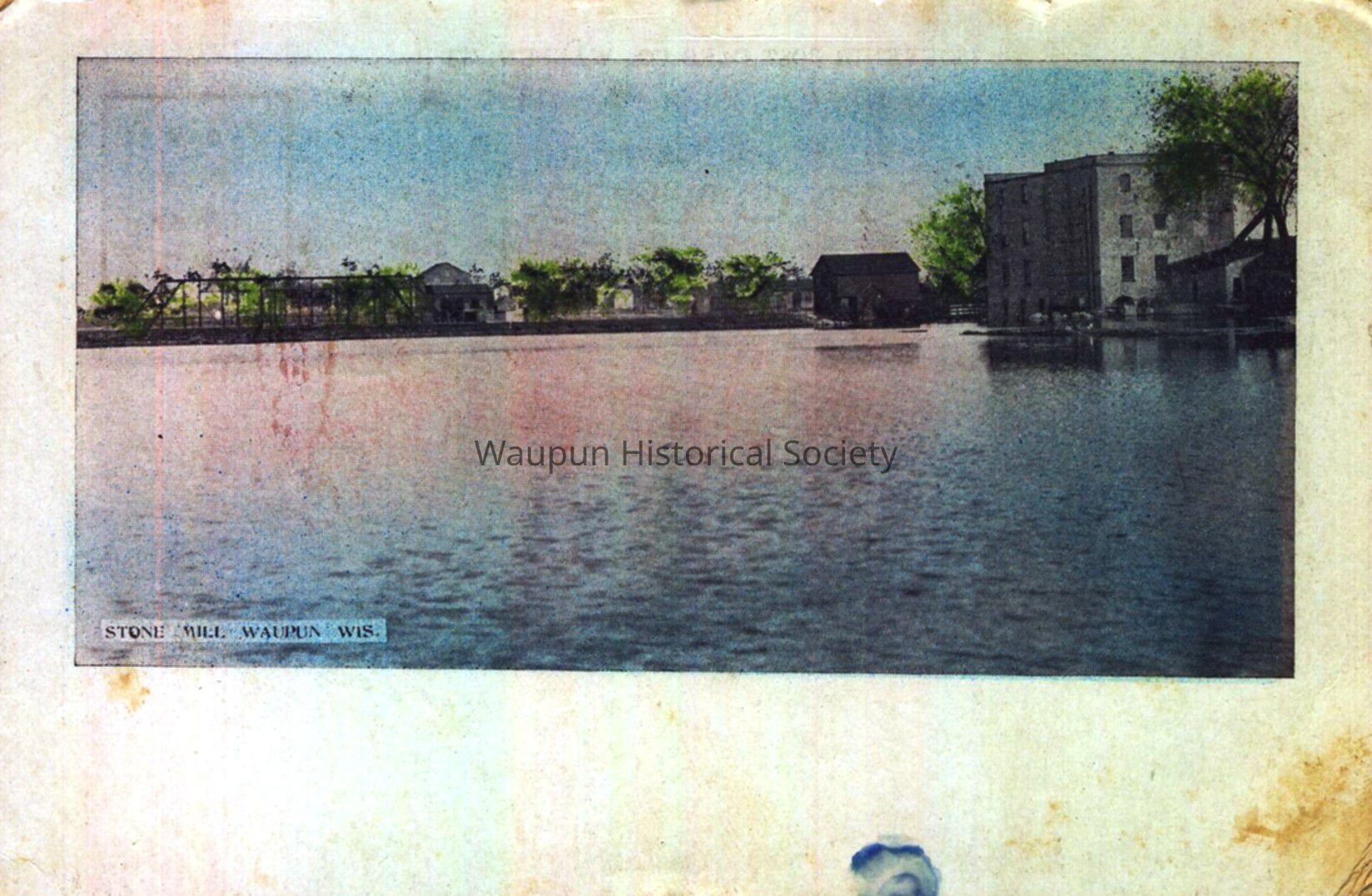 Postcard, Canning Factory, Stone Mill, Mill Pond & Madison Street Bridge.Entry/Object ID