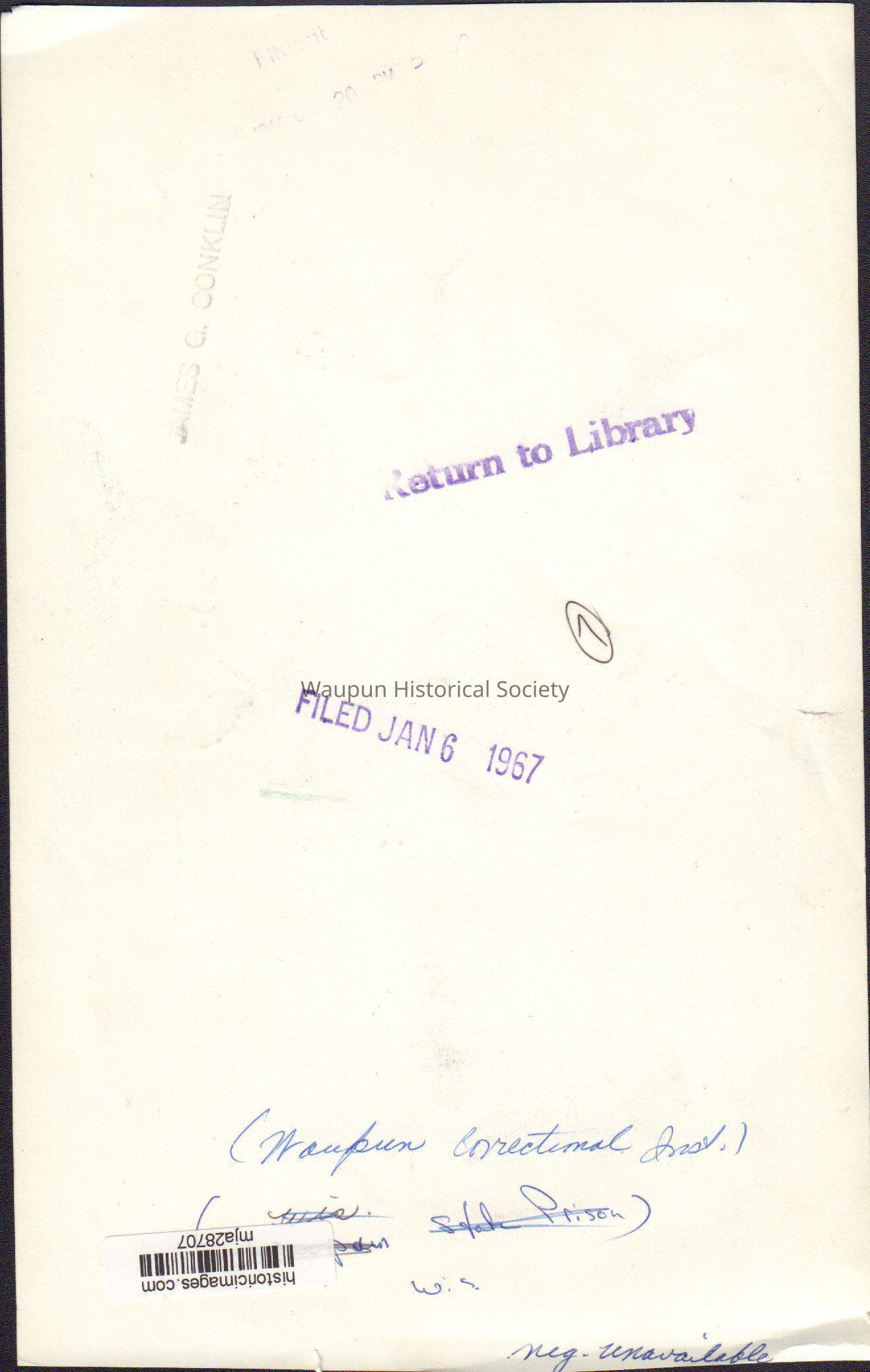 Photograph, Corrections, Wisconsin State Prison, Front WallEntry/Object ID
