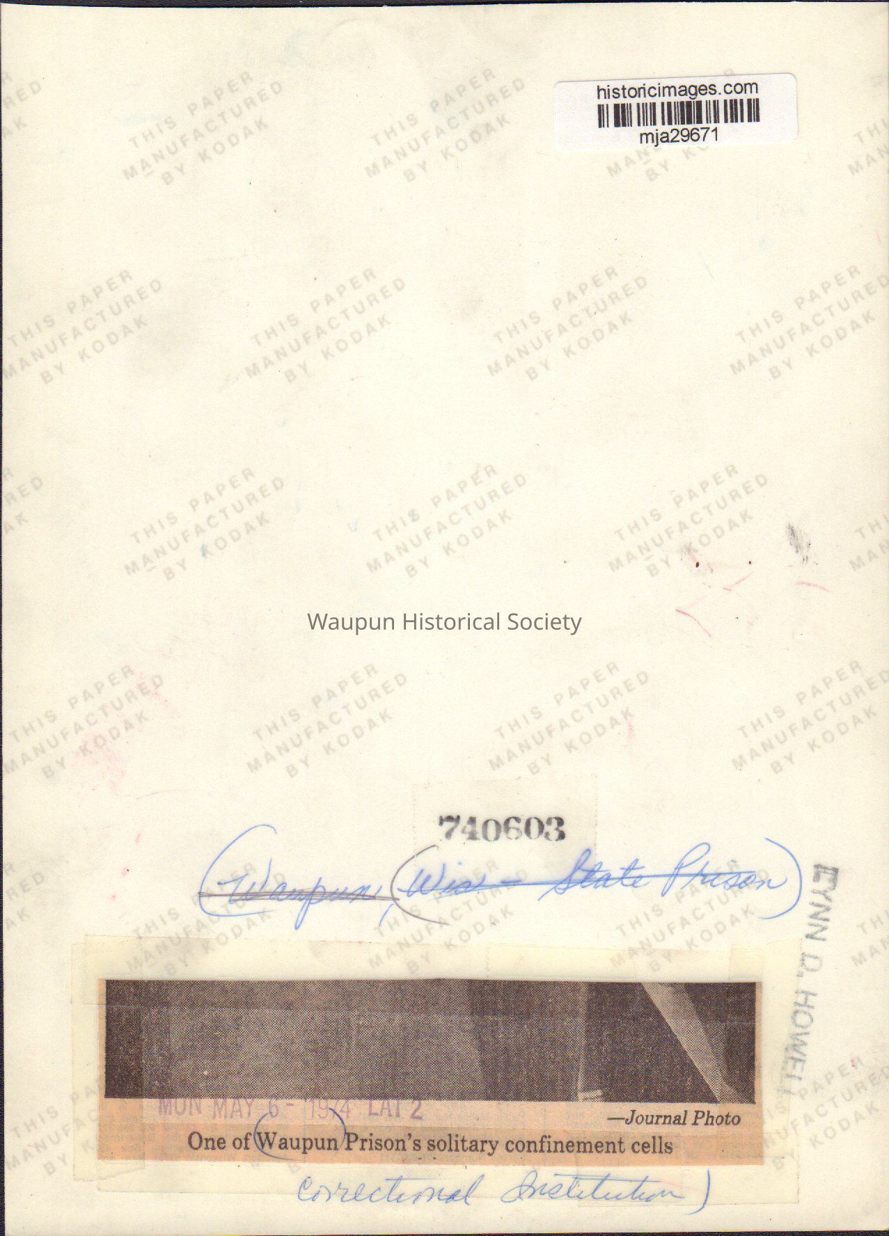 This info was from newspaper clipping glued to back of photo. Taken from Journal newspaper of May 1974. The name Lynn D. Howell is also stamped on back of this photo.Acquisition