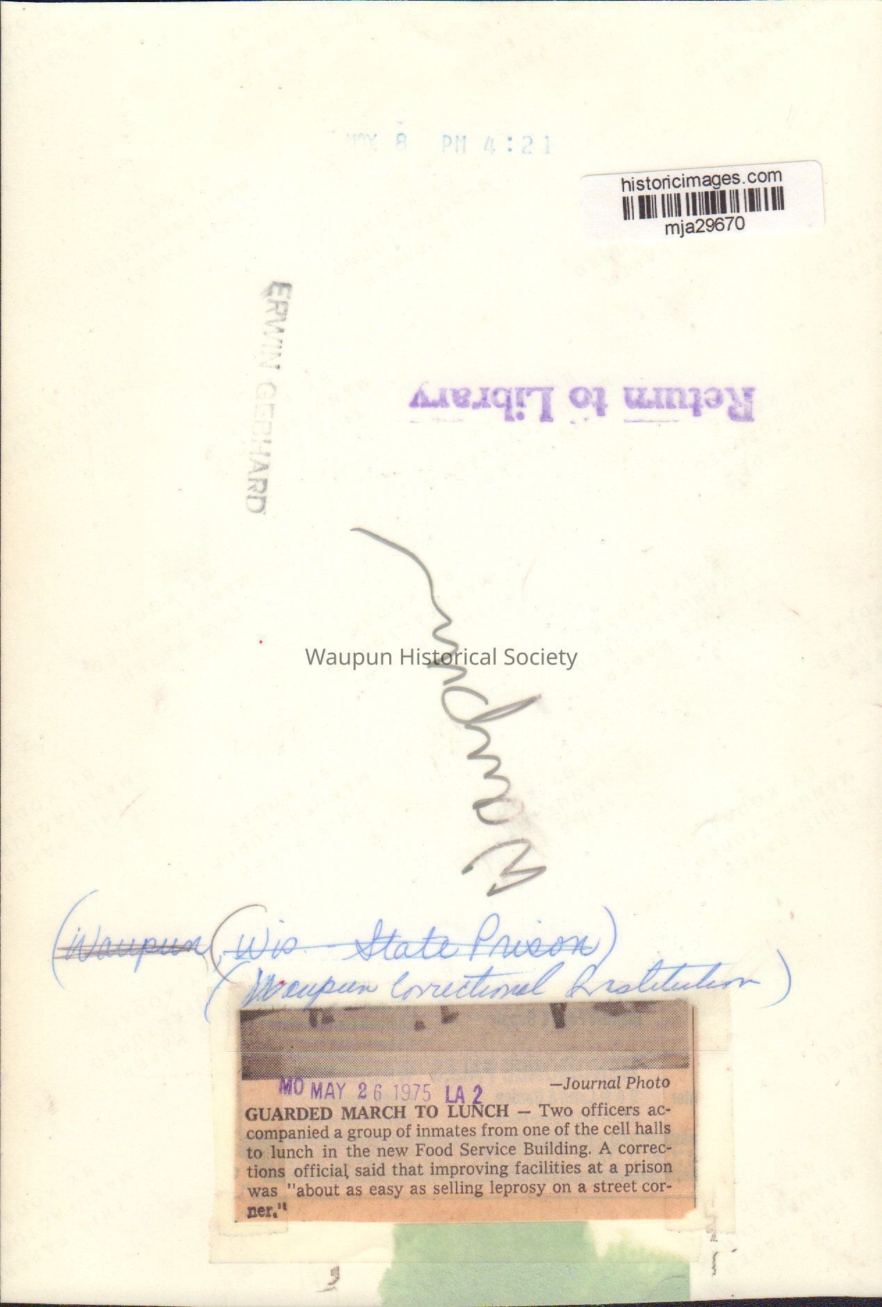 Photograph, Corrections, Wisconsin State Prison, Guarded March to LunchEntry/Object ID