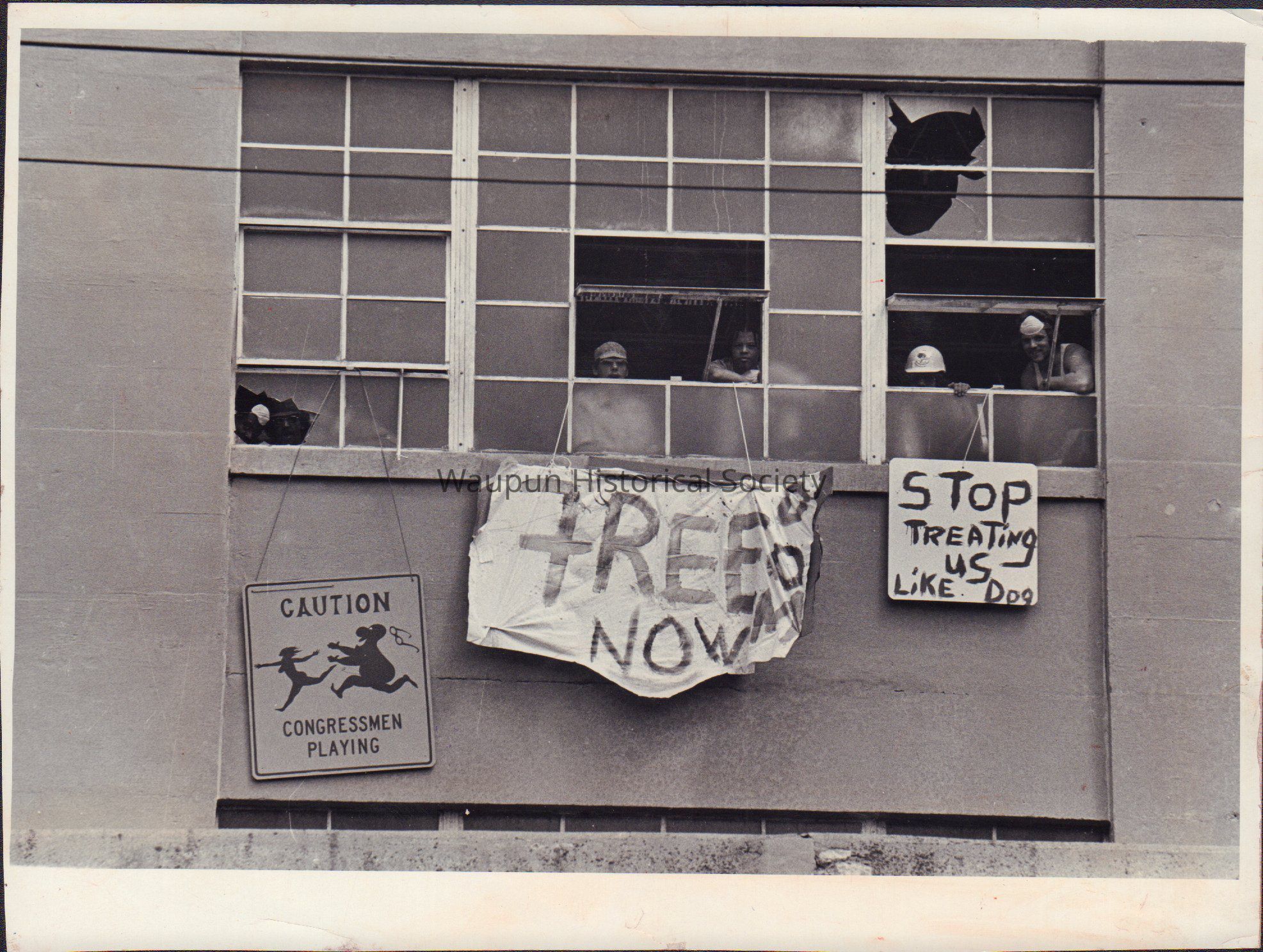 Photograph, Corrections, Wisconsin State Prison, Prison Disturbance. Black and white photo from Waupun Correctional Institution -