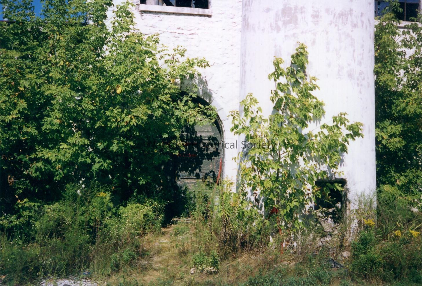 Mill Power Plant. This photo is part of a set of 6 photos taken by Jim Laird & donated to the museum. The show the doorway and stone work of the old mill power plant. These items were taken from the Union Church, (formerly located at 201 East Main St )after the fire of 1916.Acquisition