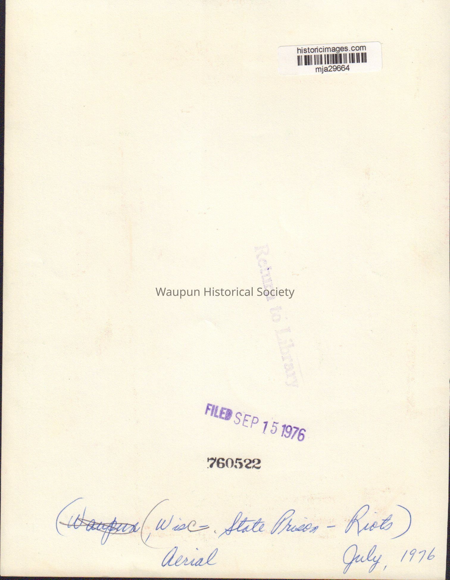 Photograph, Corrections, Wisconsin State Prison, Prison Disturbance, 1976Entry/Object ID