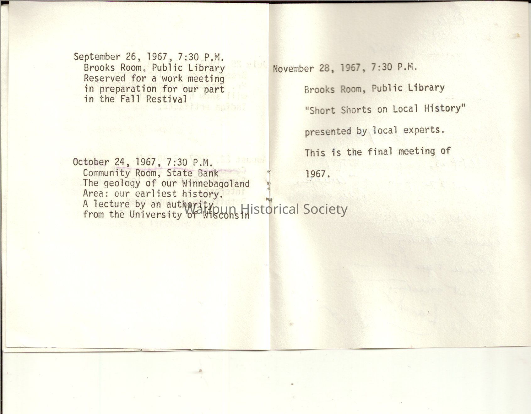 A Program put on by Waupun Historical Society" Call Immigrant Settlement of Wisconsin and several other Program by Historical Society on different dates and different surprise feature of local interest and details to be announed.Acquisition