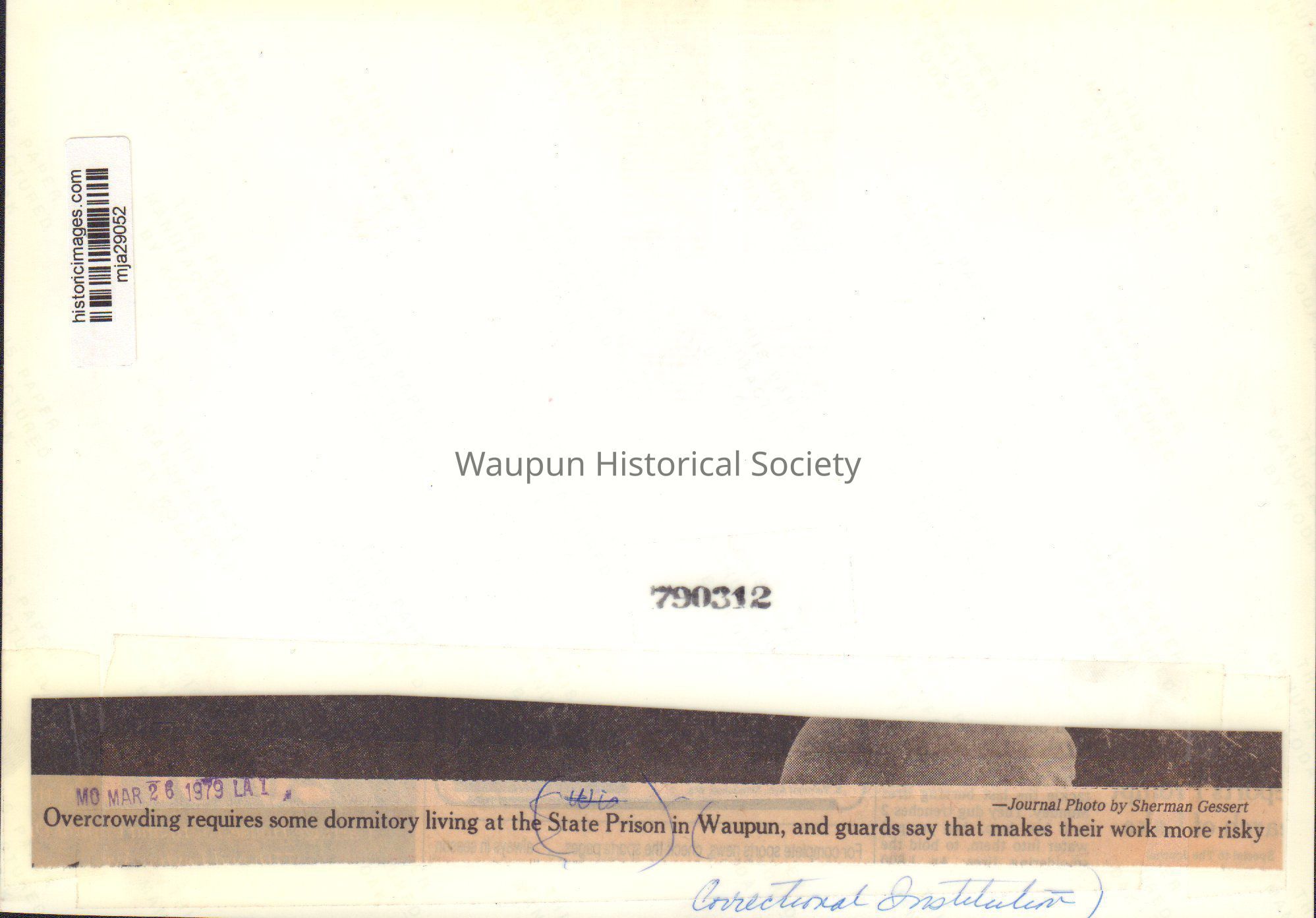 Photograph, Corrections, Wisconsin State Prison, OvercrowdingEntry/Object ID