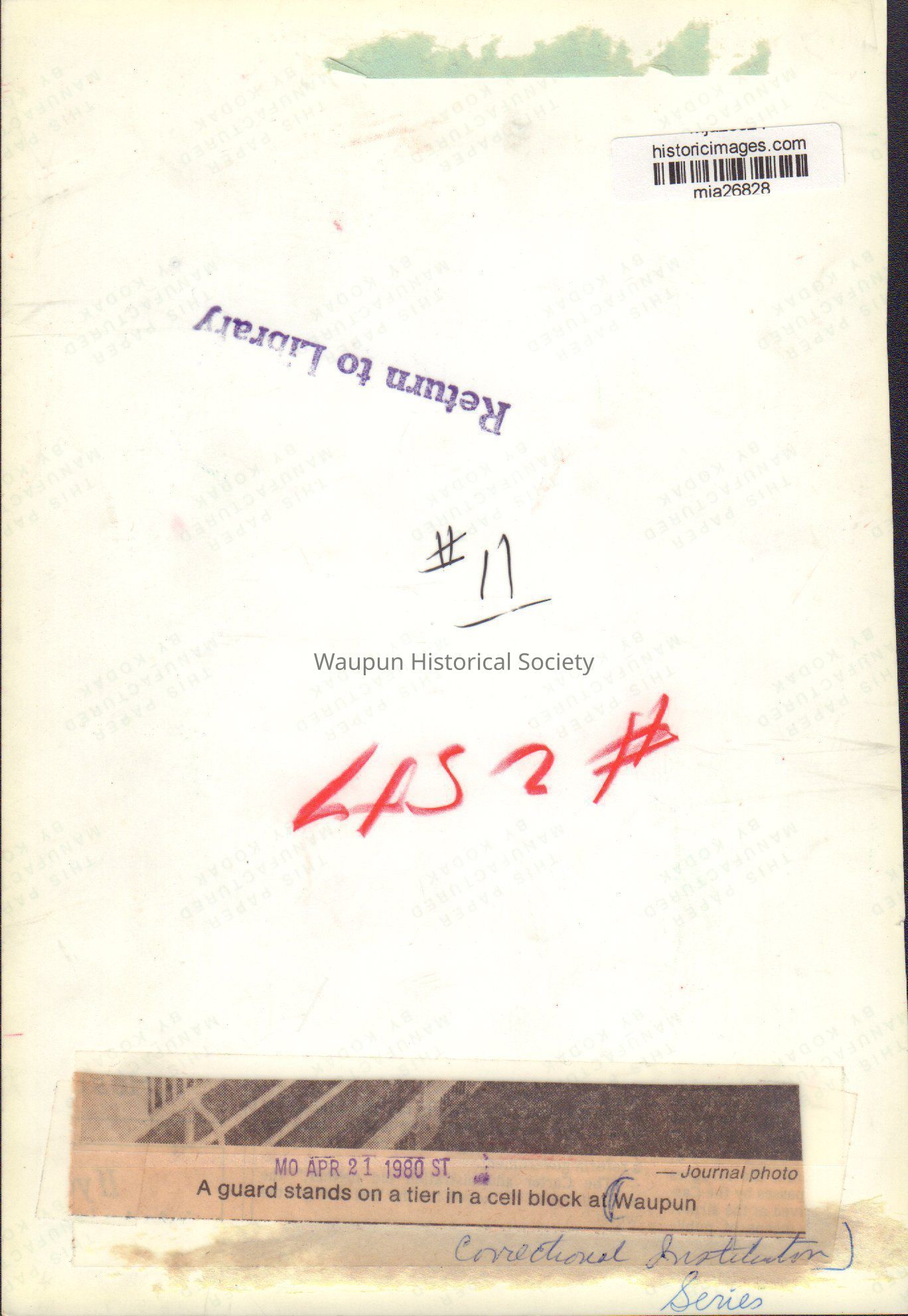 Photograph, Corrections, Wisconsin State Prison, GuardEntry/Object ID