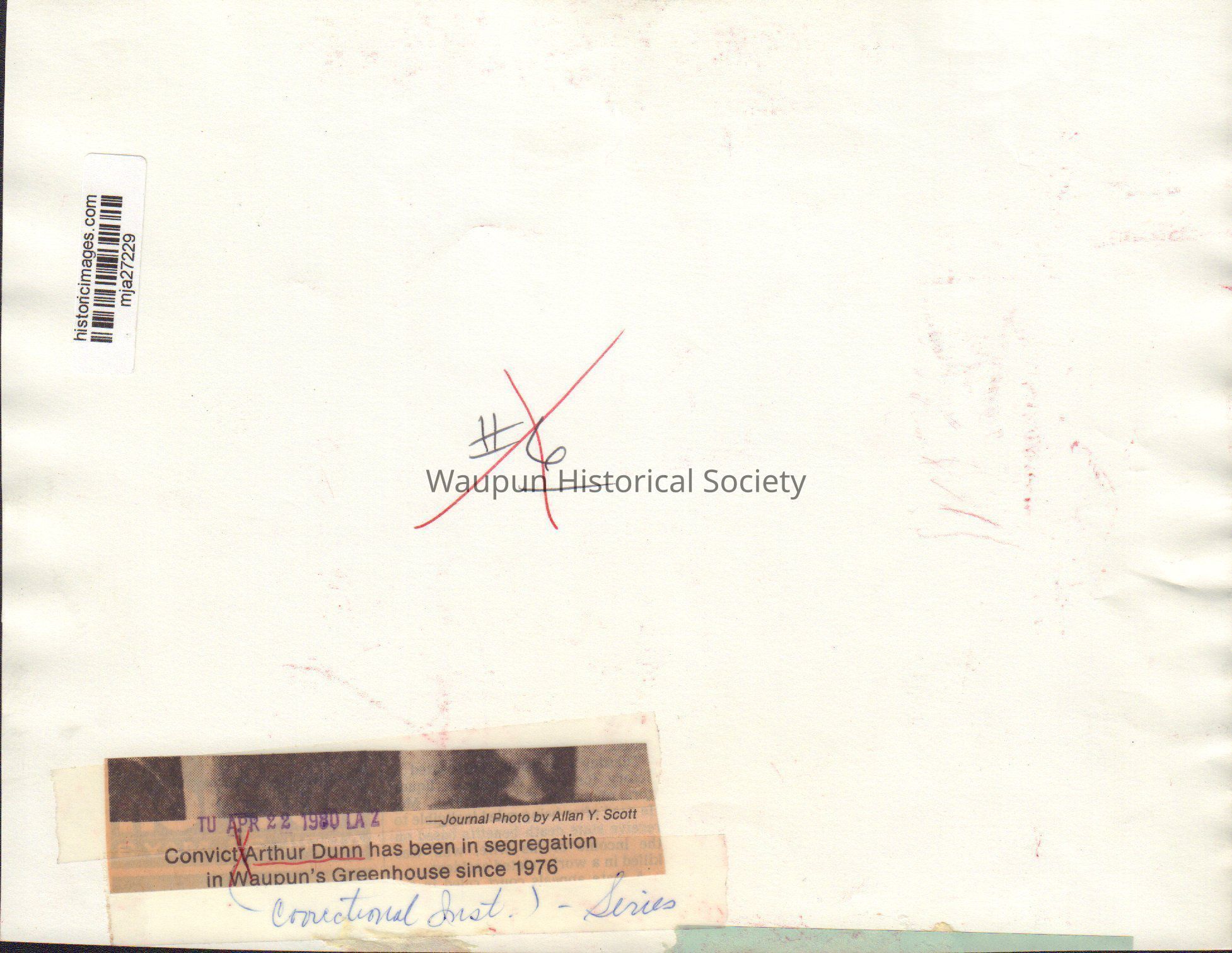 Photograph, Corrections, Wisconsin State Prison, Convict Arthur Dunn. Black and white photo from Waupun Correctional Institution -
