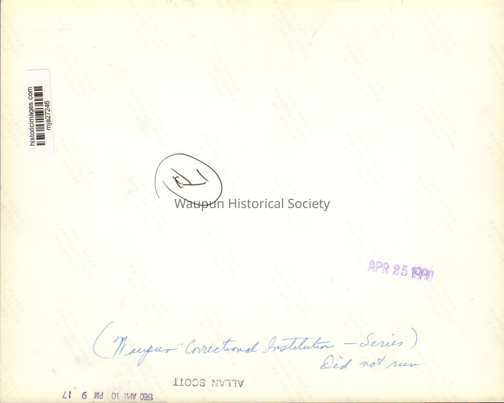 The name, Allan Scott is stamped on back of this photo.Acquisition