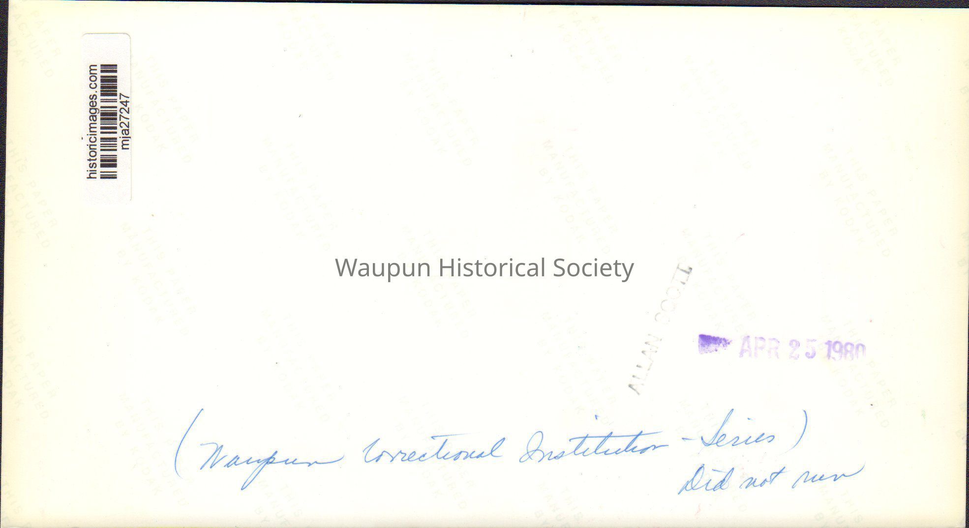 Photograph, Corrections, Wisconsin State Prison, Wall & BarsEntry/Object ID