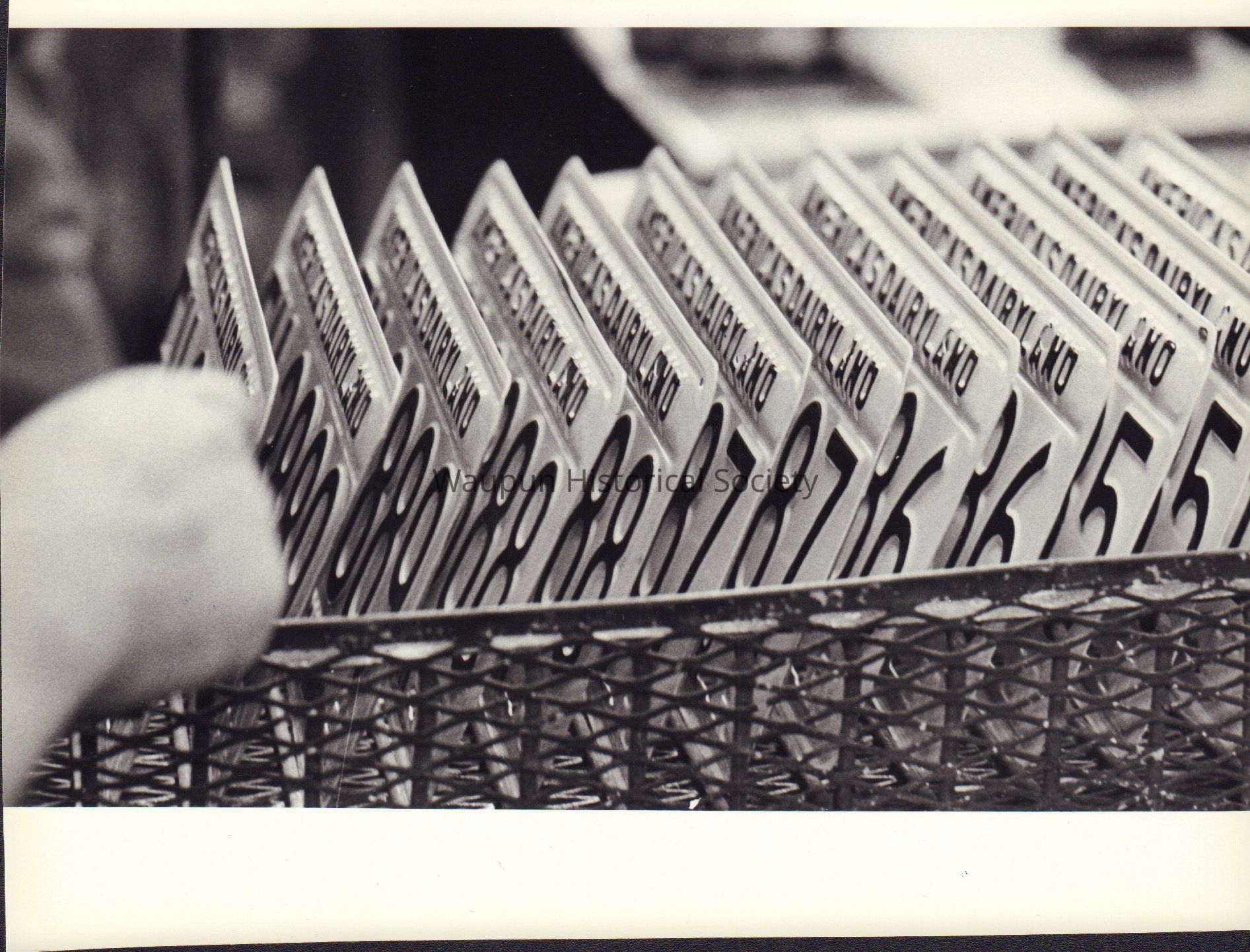 Photograph, Corrections, Wisconsin State Prison, License Plates. Black and white photo from Waupun Correctional Institution -