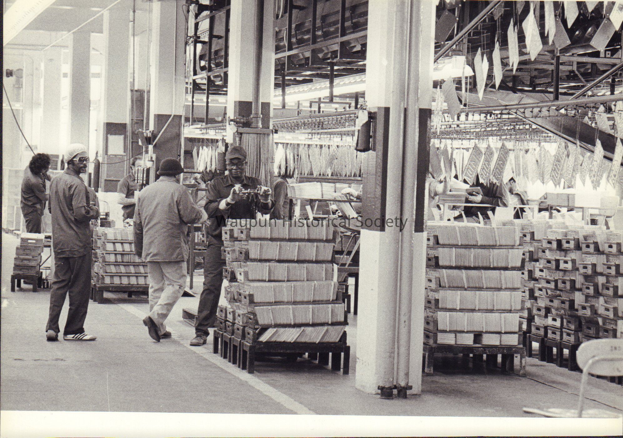 Inmates at work making license plates in the Waupun prison.Acquisition