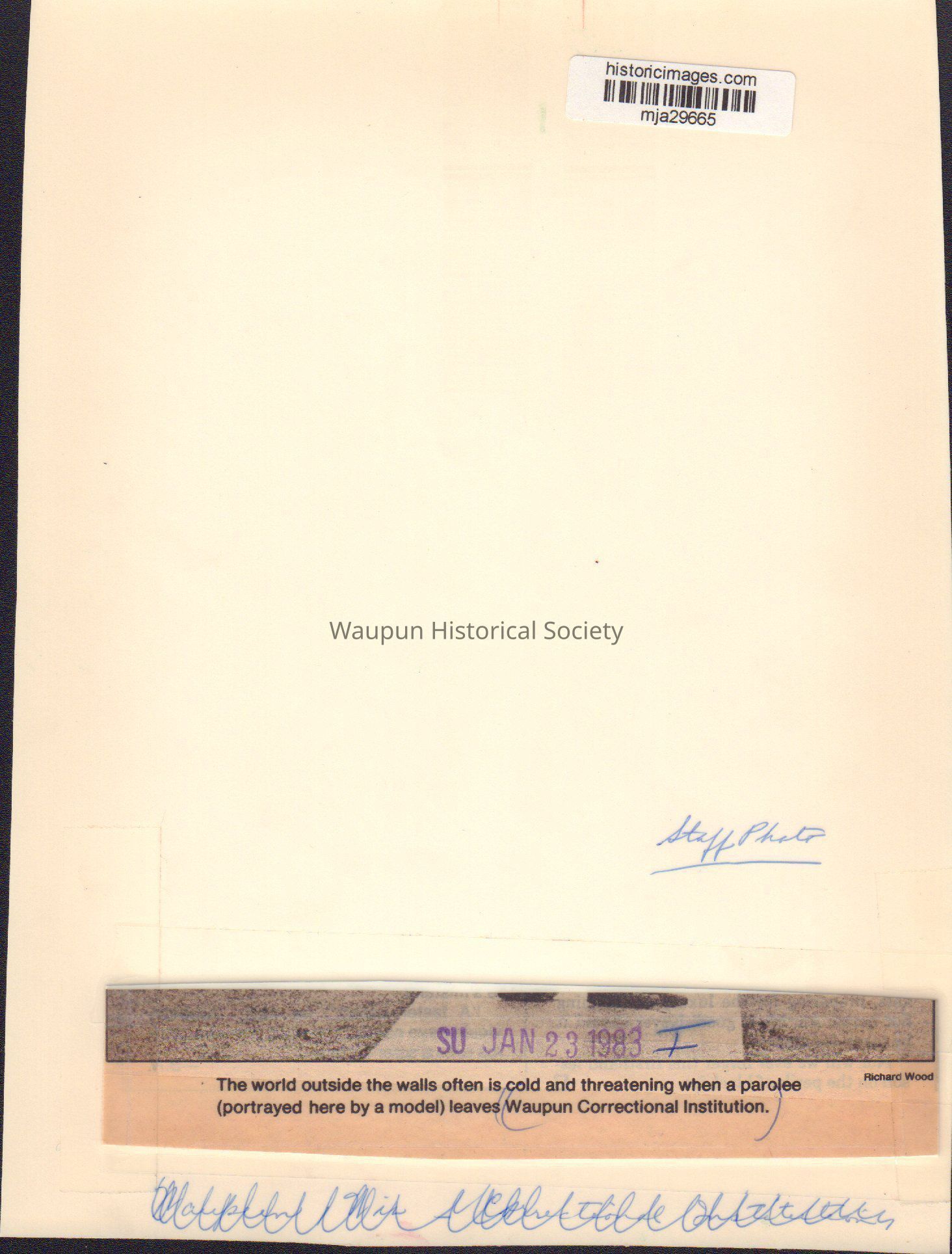 Photograph, Corrections, Wisconsin State Prison, Parolee. Black and white photo from Waupun Correctional Institution -