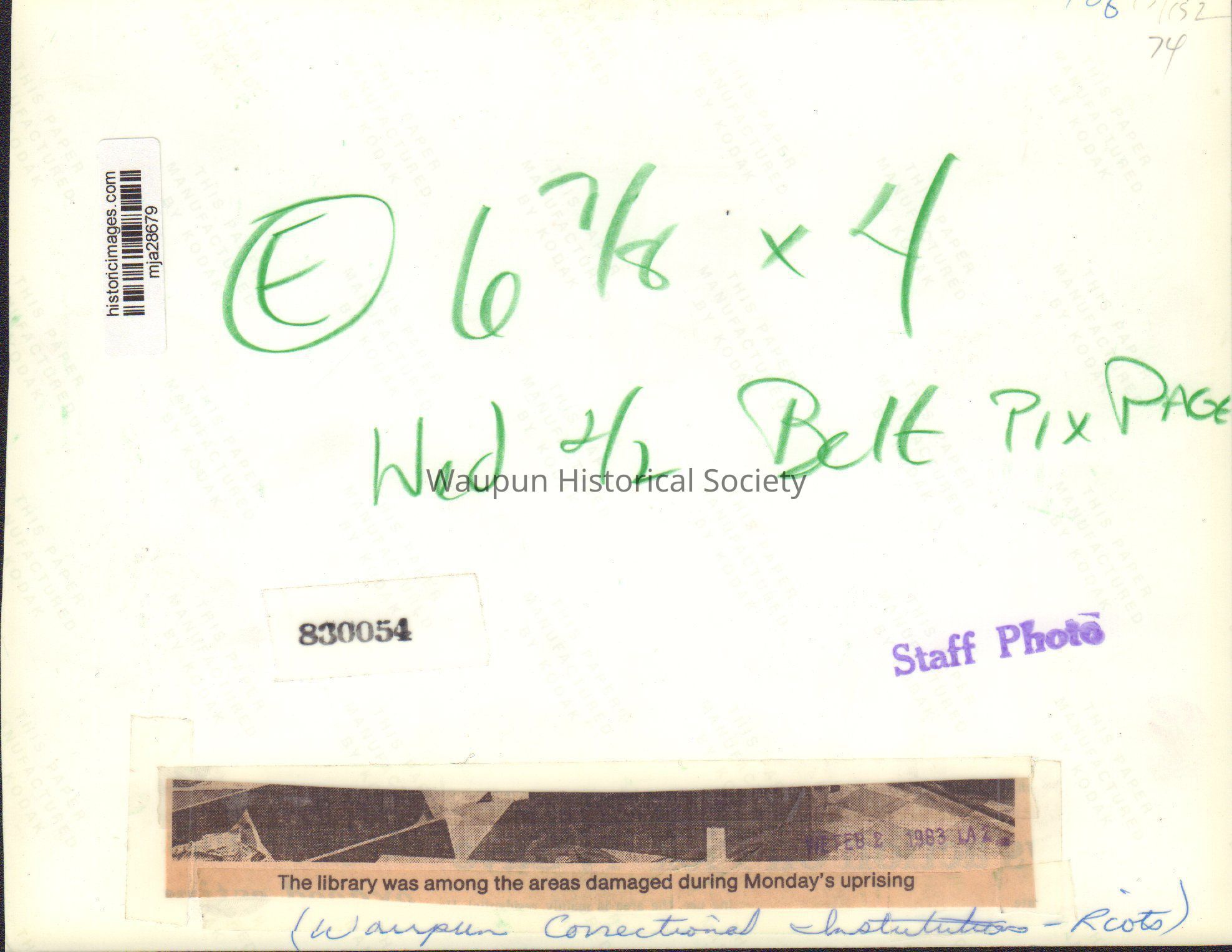Photograph, Corrections, Wisconsin State Prison, Prison Disturbance DamageEntry/Object ID