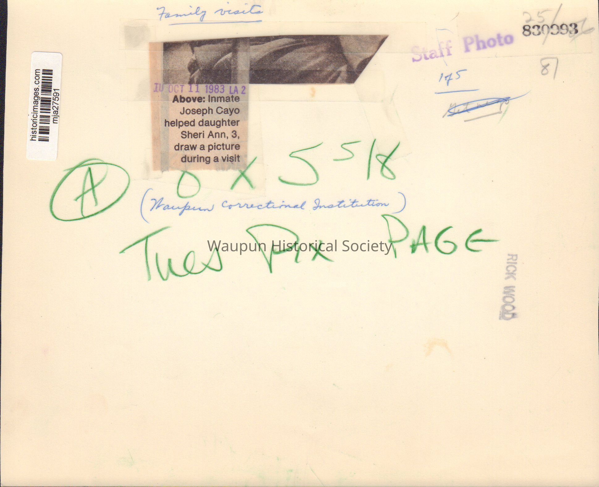 Photograph, Corrections, Wisconsin State Prison, Family VisitsEntry/Object ID