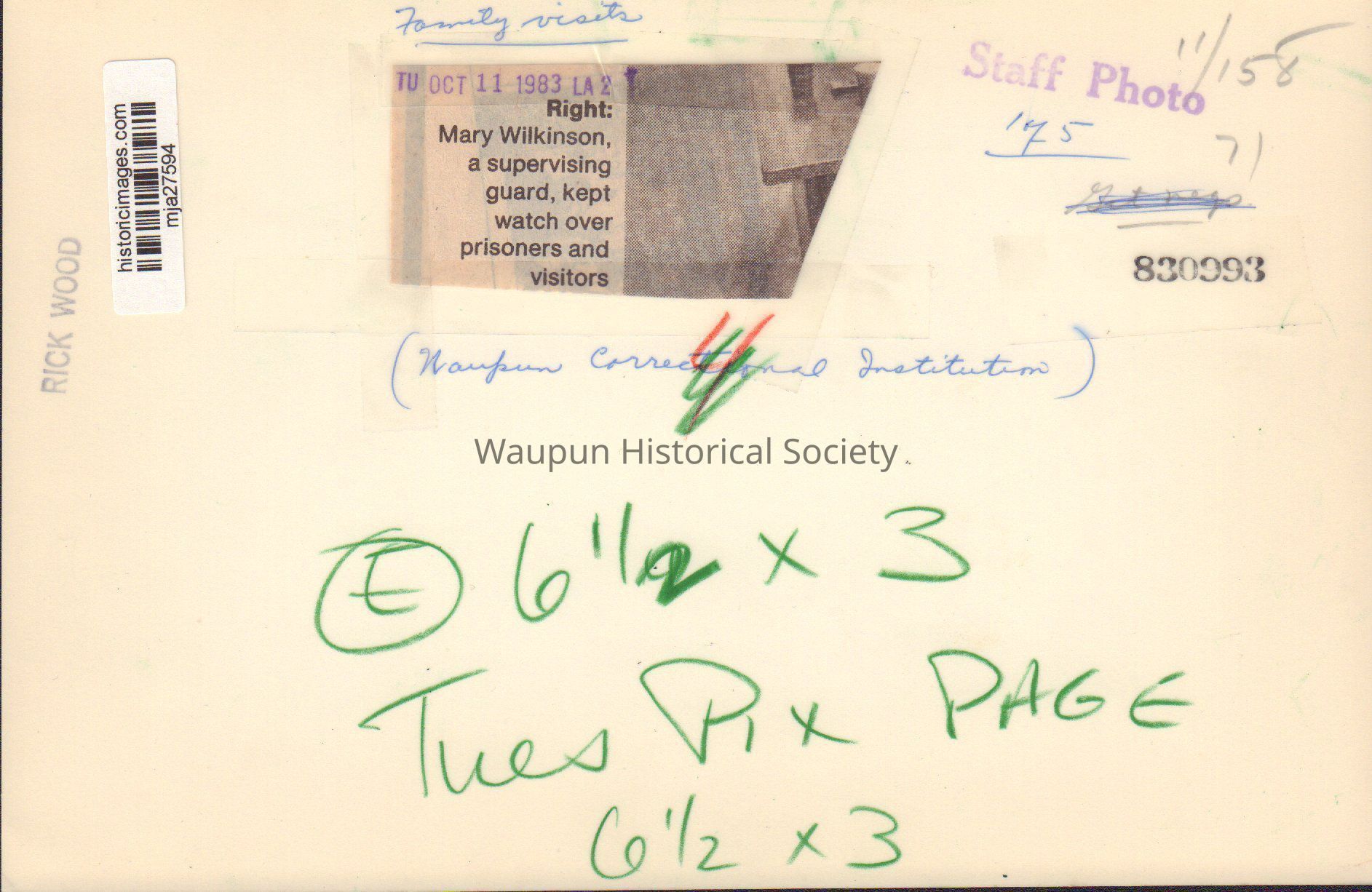 Photograph, Corrections, Wisconsin State Prison, Family VisitsEntry/Object ID
