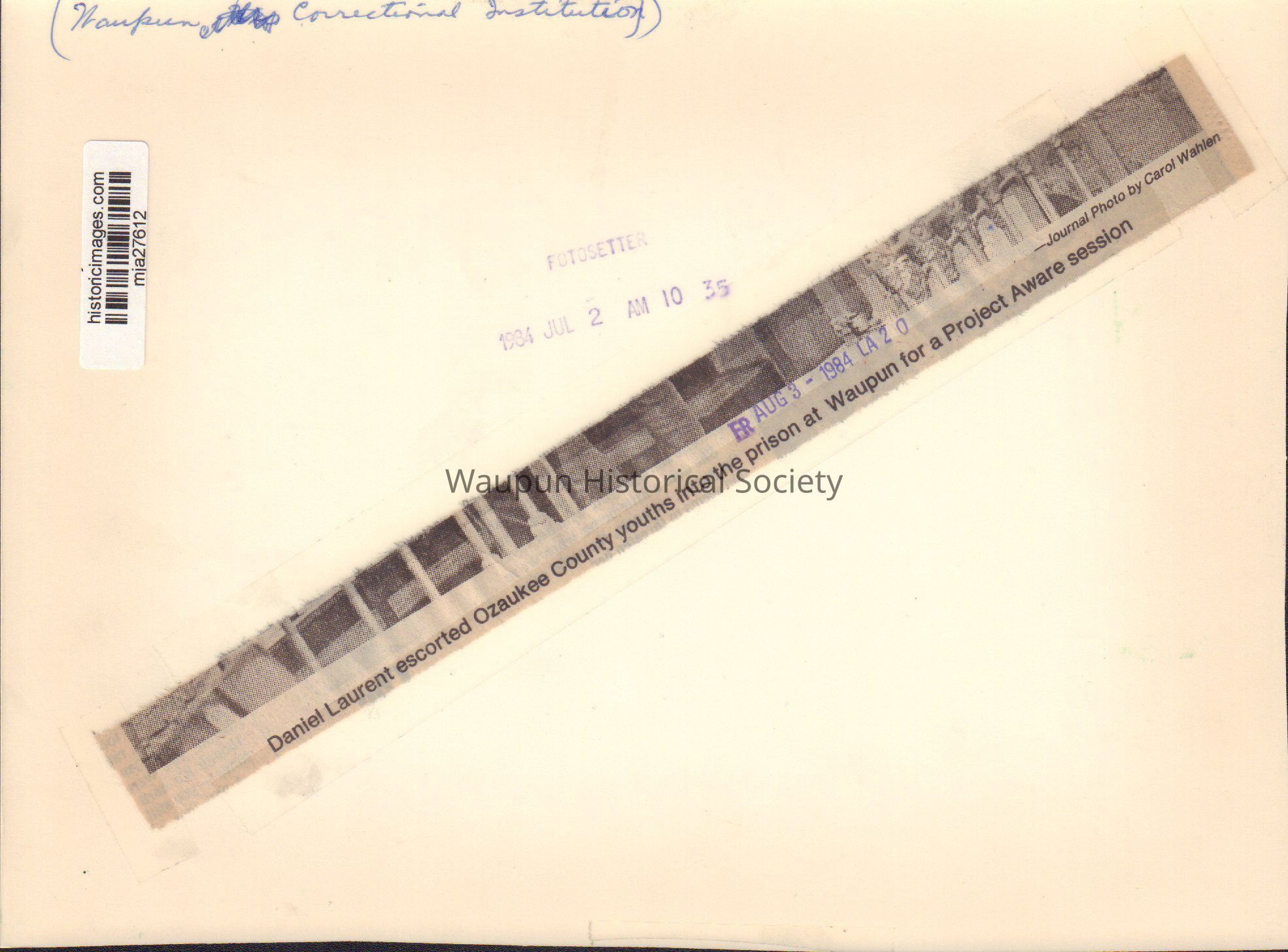 Photograph, Corrections, Wisconsin State PrisonEntry/Object ID