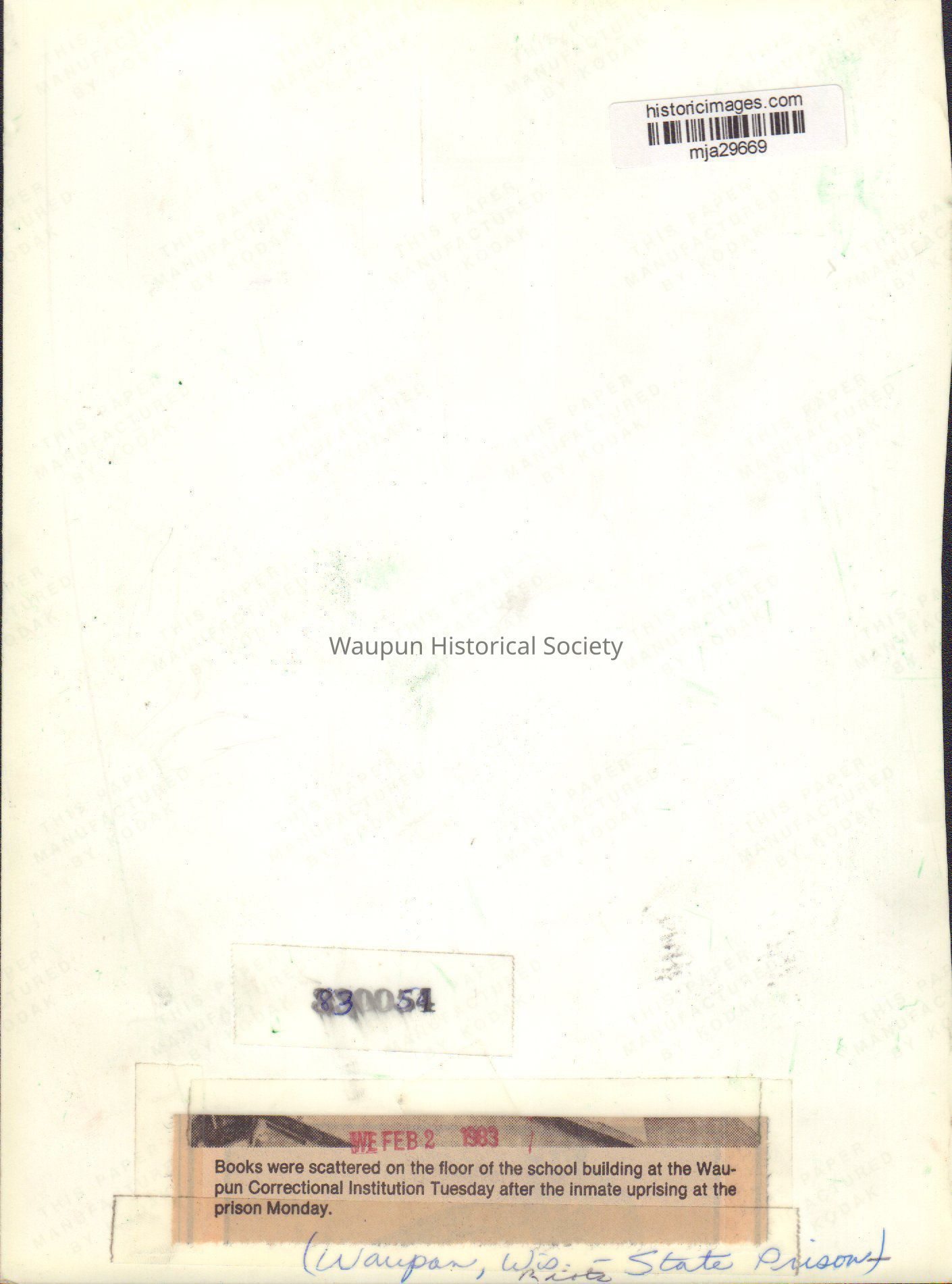 Books were scattered on the floor of the school building at the Waupun Correctional Institution Tuesday after the inmate uprising at the prison Monday.Acquisition