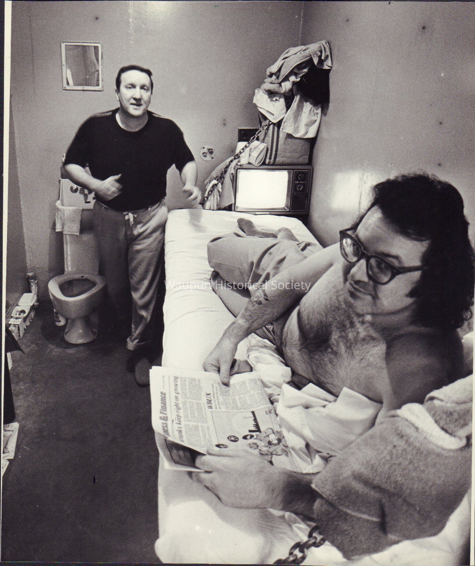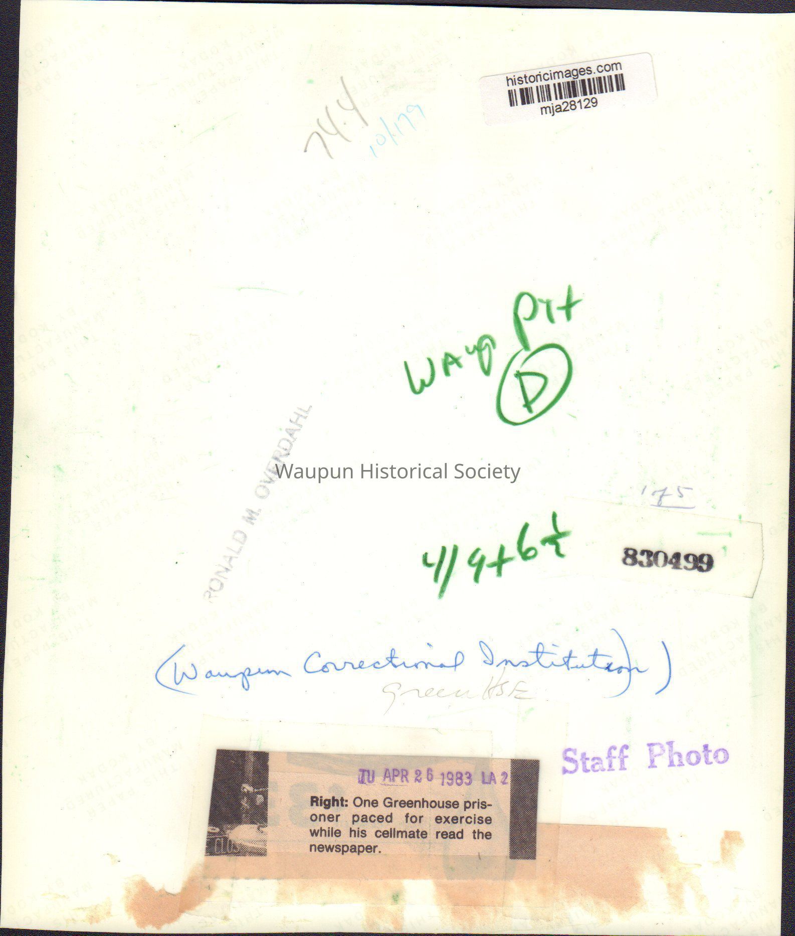 Right: One Greehouse prisoner paced for exercise while his cellmate read the newspaper.Acquisition