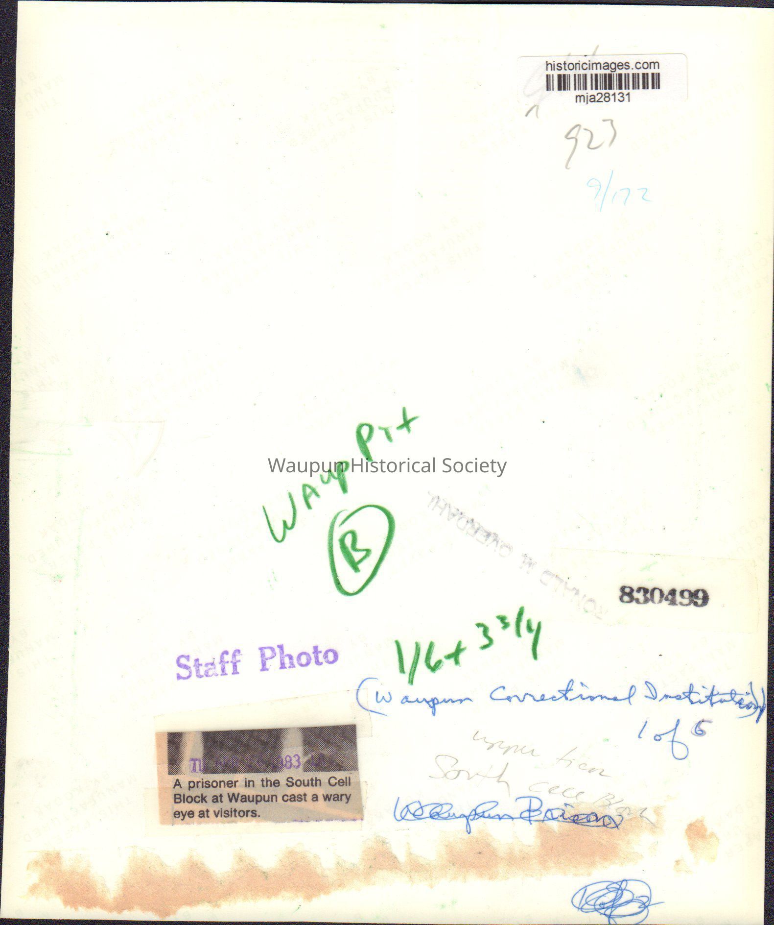 A prisoner in the South Cell Block at Waupun cast a wary eye at visitors.Acquisition