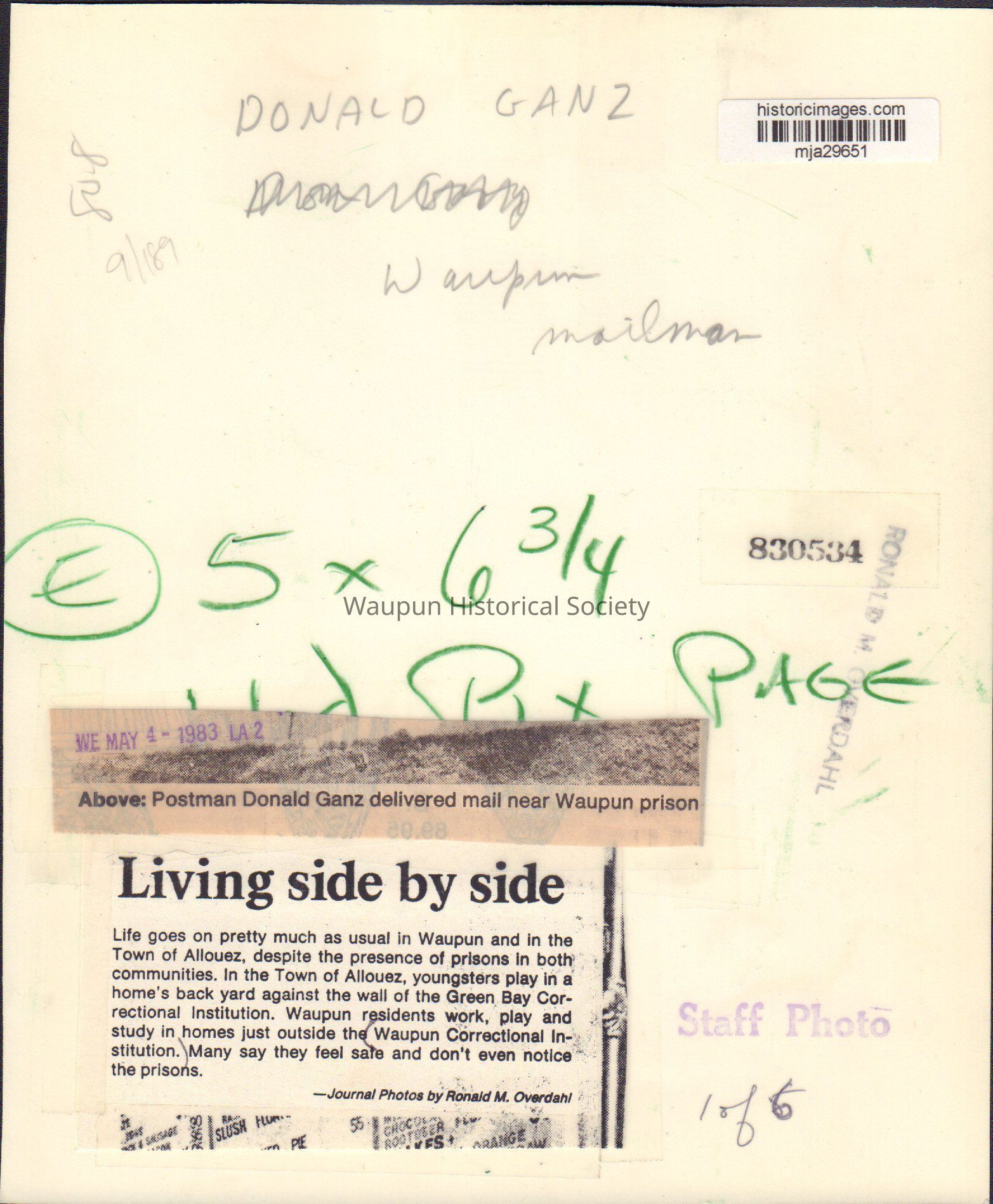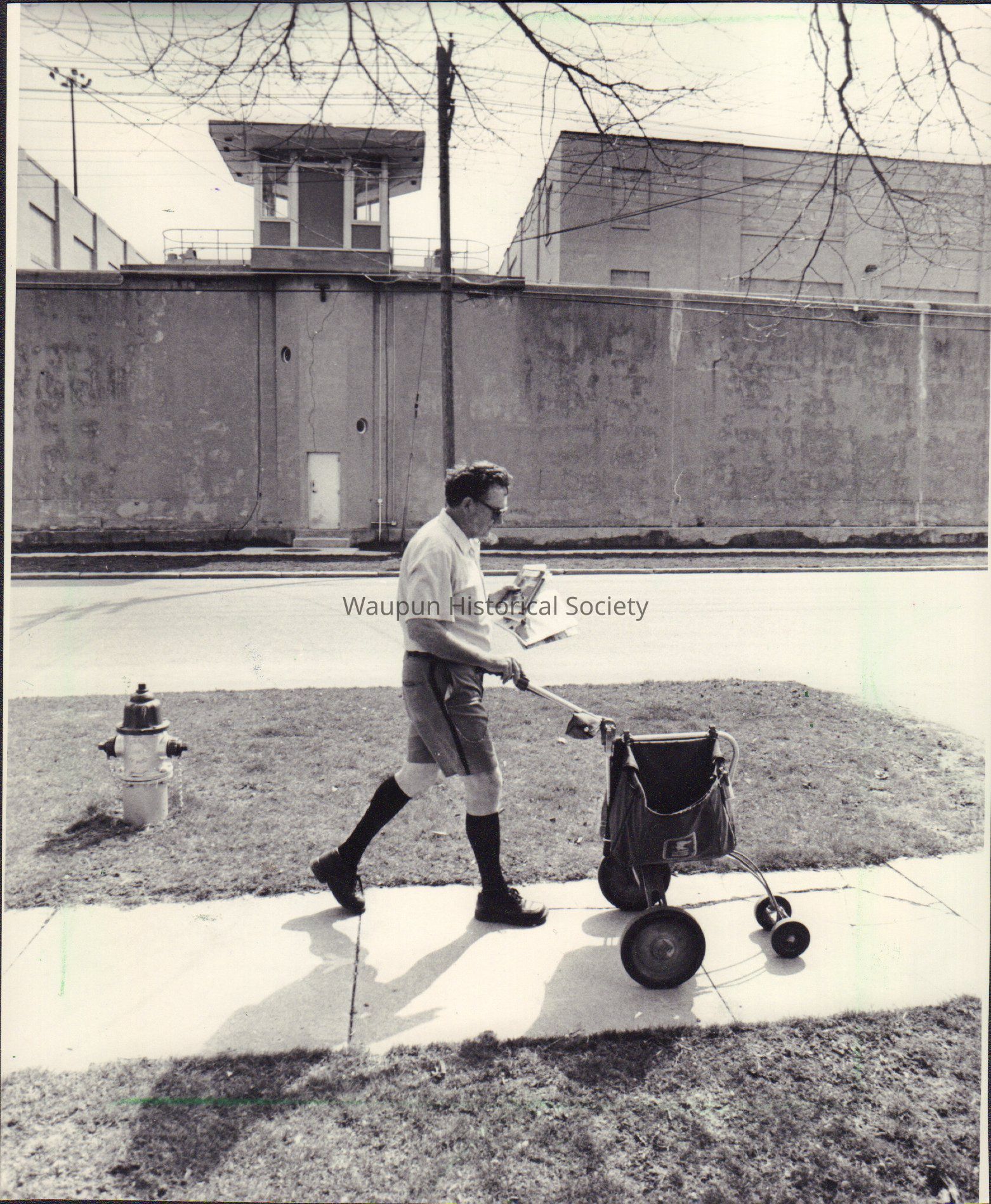 Above: Postman Donald Ganz deliverd mail near Waupun prison.