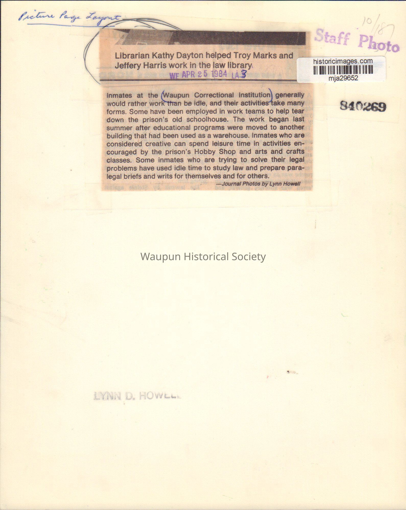 Photograph, Corrections, Wisconsin State Prison, Law LibraryEntry/Object ID