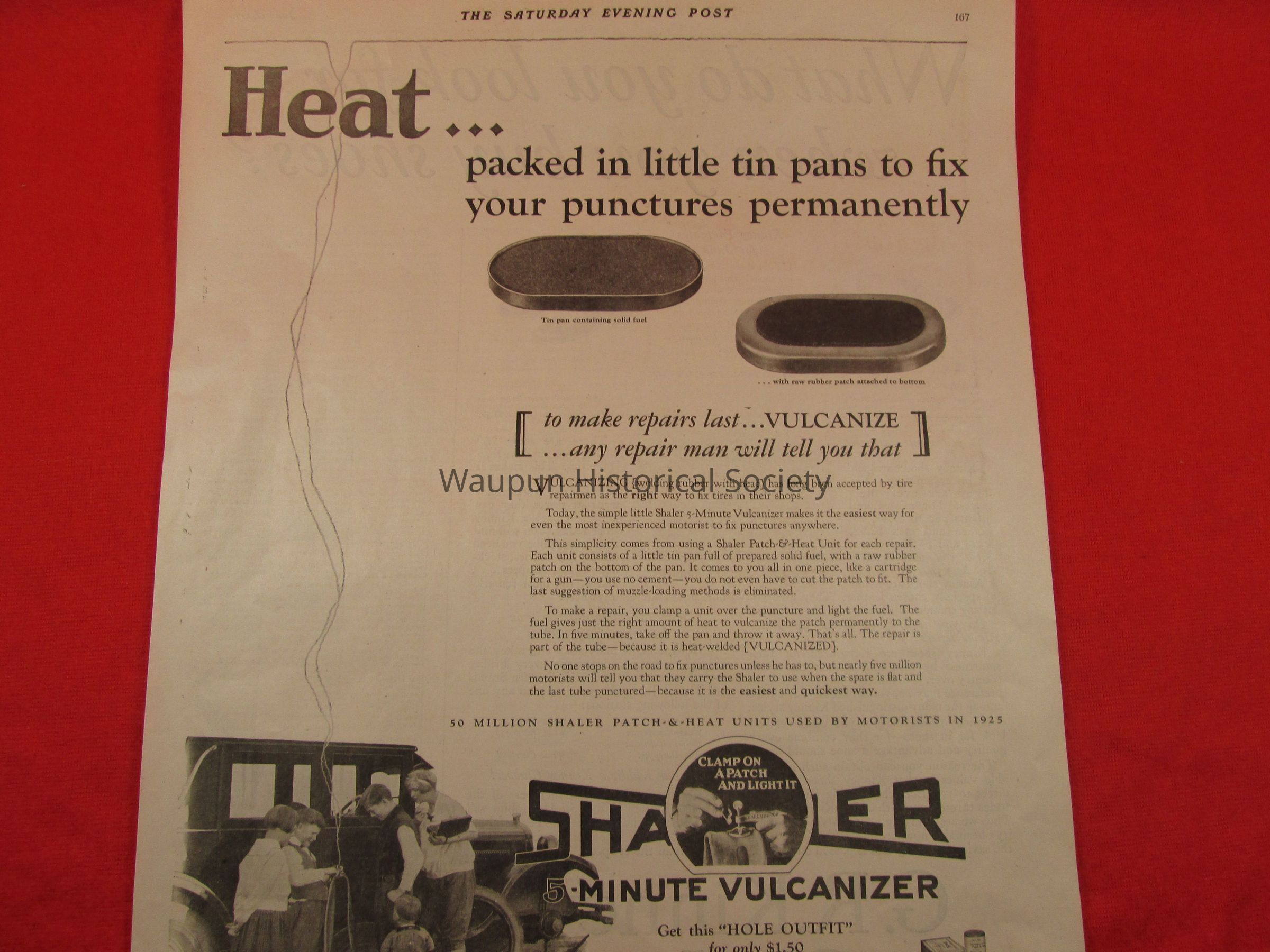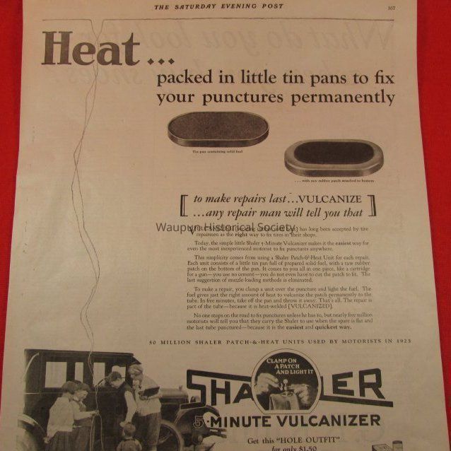 Advertisement for SHALER 5-Minute Vulcanizer, from The Saturday Evening Post of June 12,1926.Acquisition