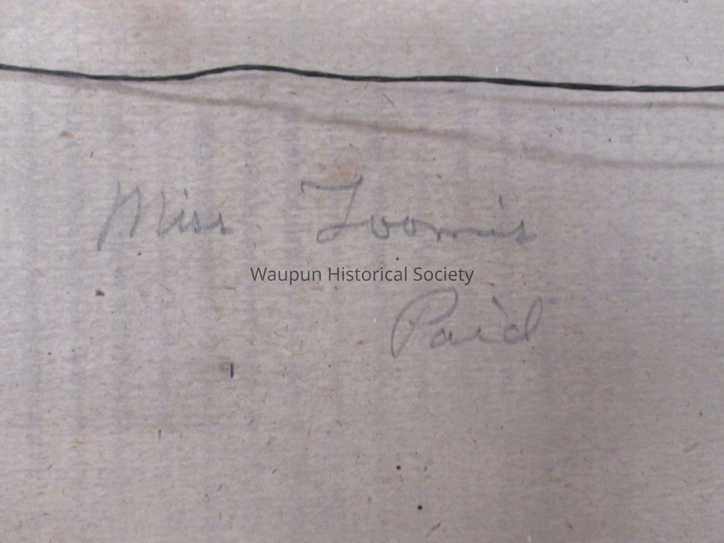(Located on the back are the words: "Miss Loomis PAID".Acquisition