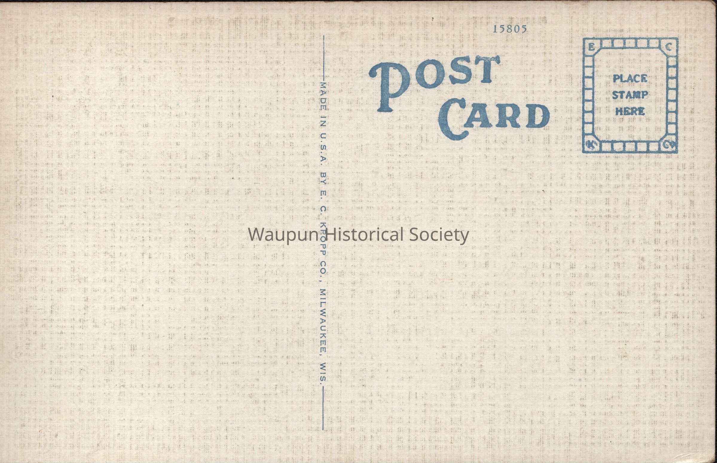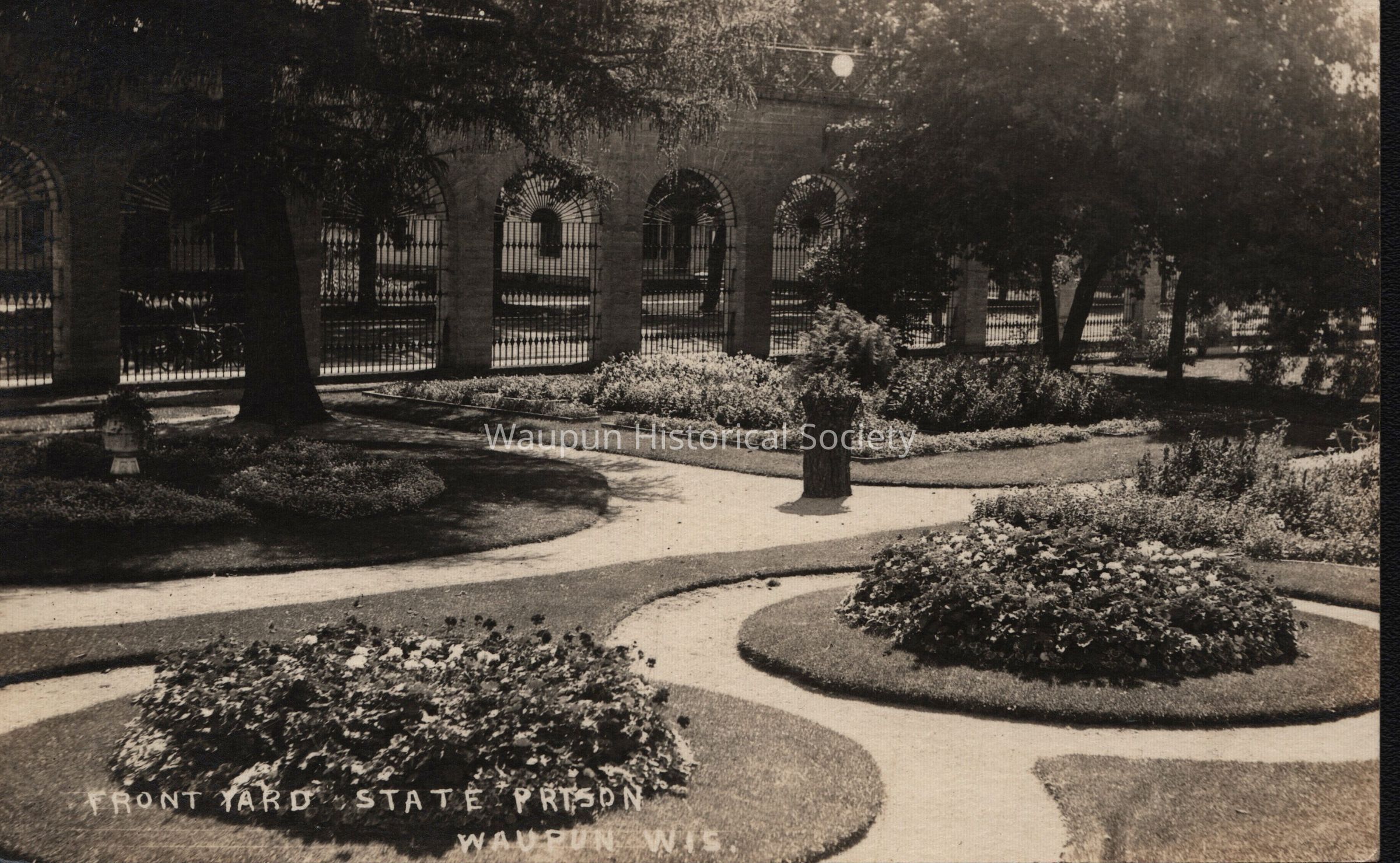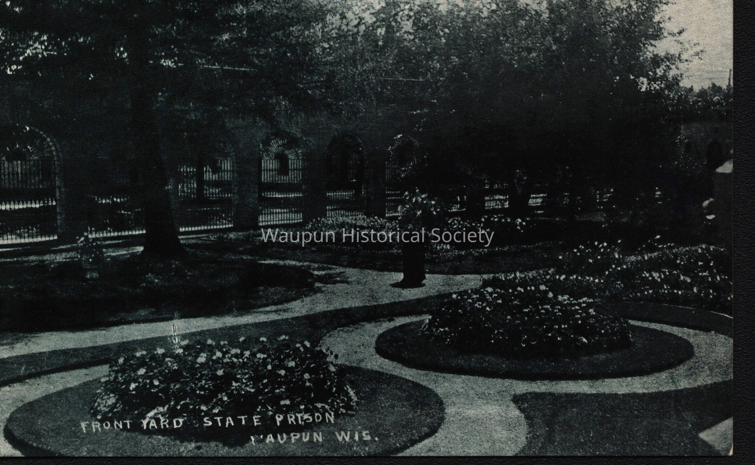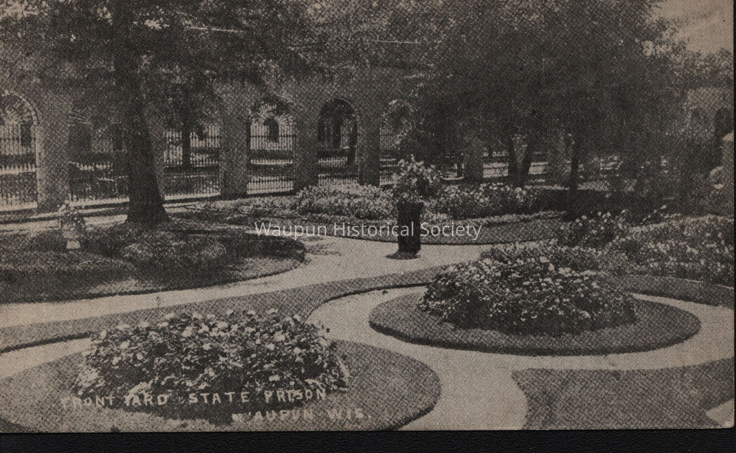 Postcard, Corrections, Wisconsin State Prison, Front Yard. A collection of souvenir postcards, circa 1910 featuring the Waupun State Prison. Unless otherwise noted, these postcards are thought to be taken by Stanley Johnson a local photographer at the time.Acquisition