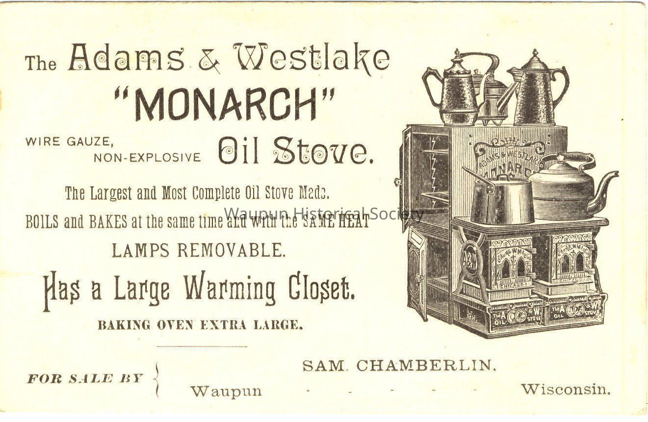 The Adams & Westlake "Monarch" Oil Stove, Sam. Camberlin, Waupun, Wis.Acquisition