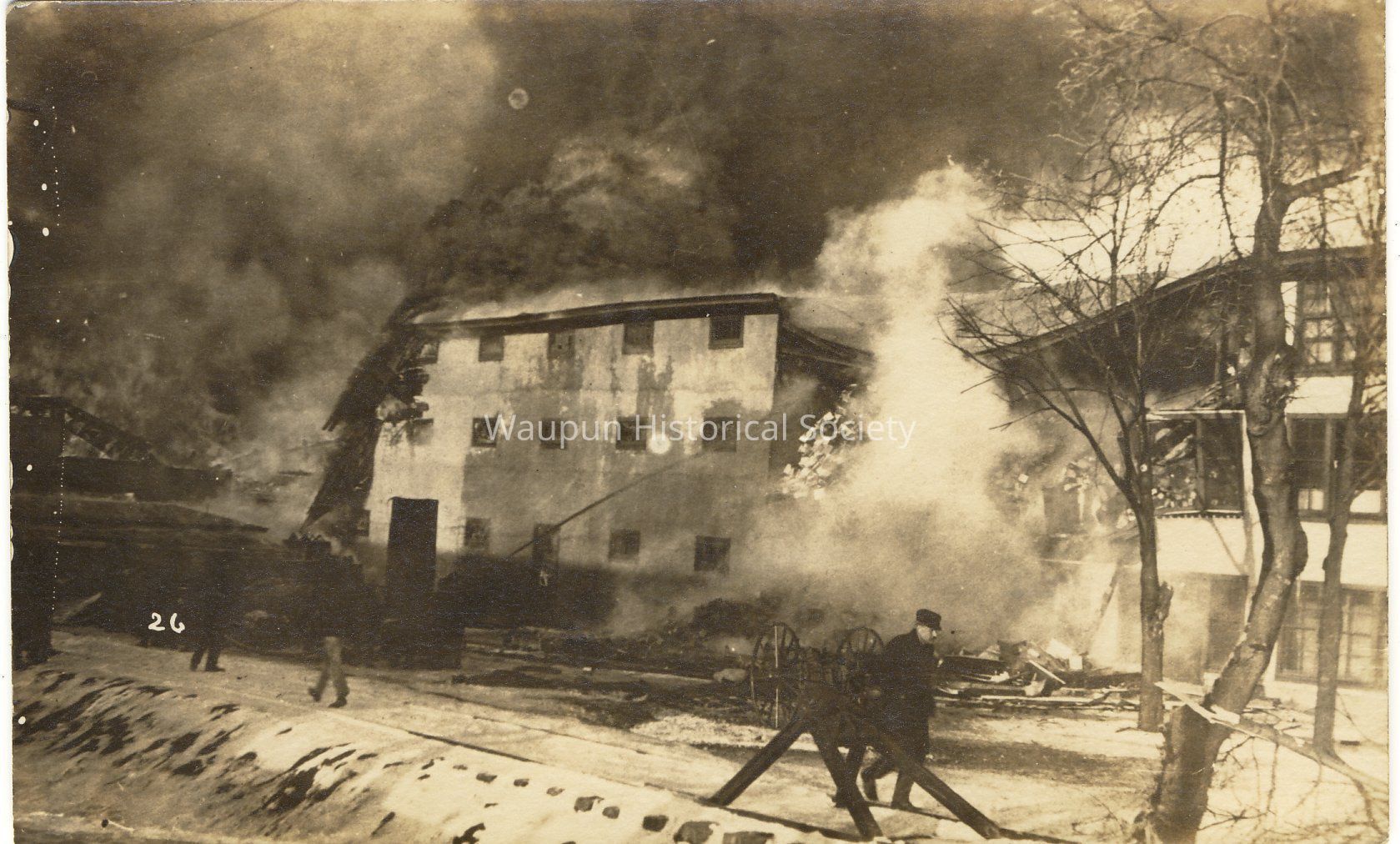 Aftermath of the C.A. Shaler Company Fire. One of 13 Black & White picture postcards showing the aftermath of the March 2, 1922 Shaler Co. fire. The fire which struck at about 4:15 p.m. completely destroyed the buildings and most of the machinery and took the lives of three women employees. The victims were Bessie Koekoek, Mrs. Howard Carney, and Mrs. Emma Michels. The fire caused an estimated loss of over a half a million dollars to the Shaler Co. and another $20,000 to the Althouse-Wheeler Co.; $4000 to the neighboring Beucus home, and still another $5000 in other loses.Acquisition