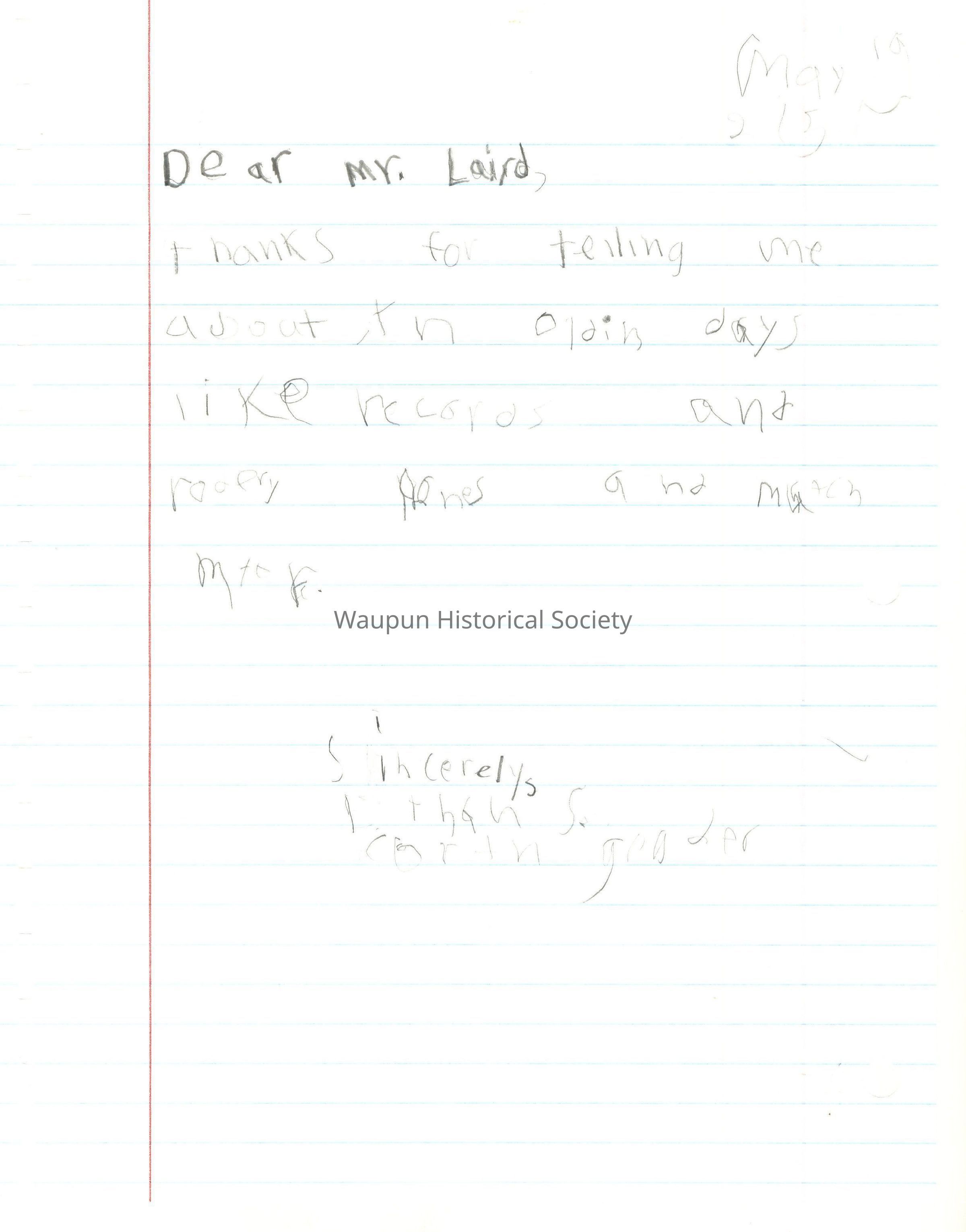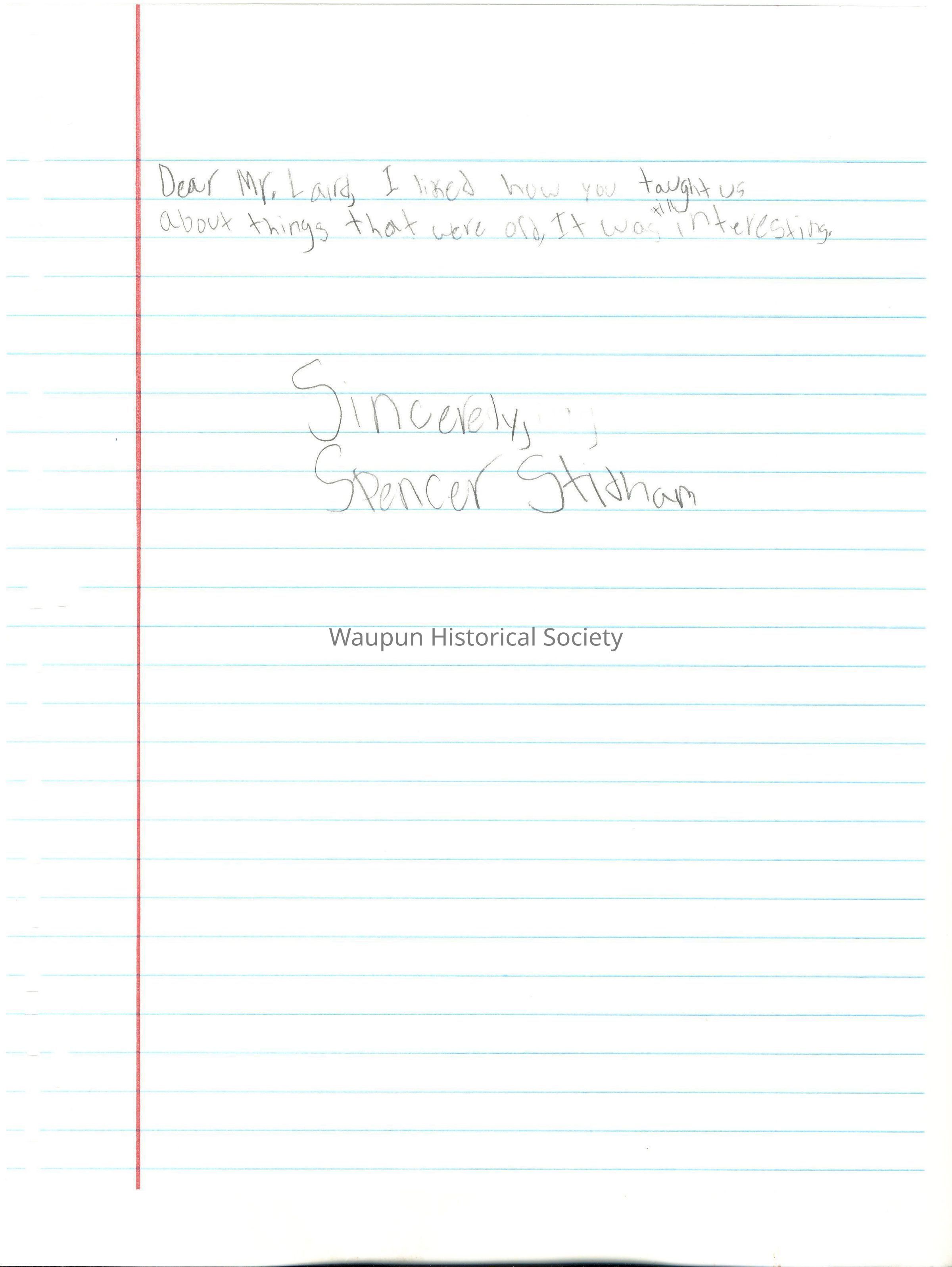 Dear Mr. Laird, I liked how you taught us about things that were old. It was interesting.