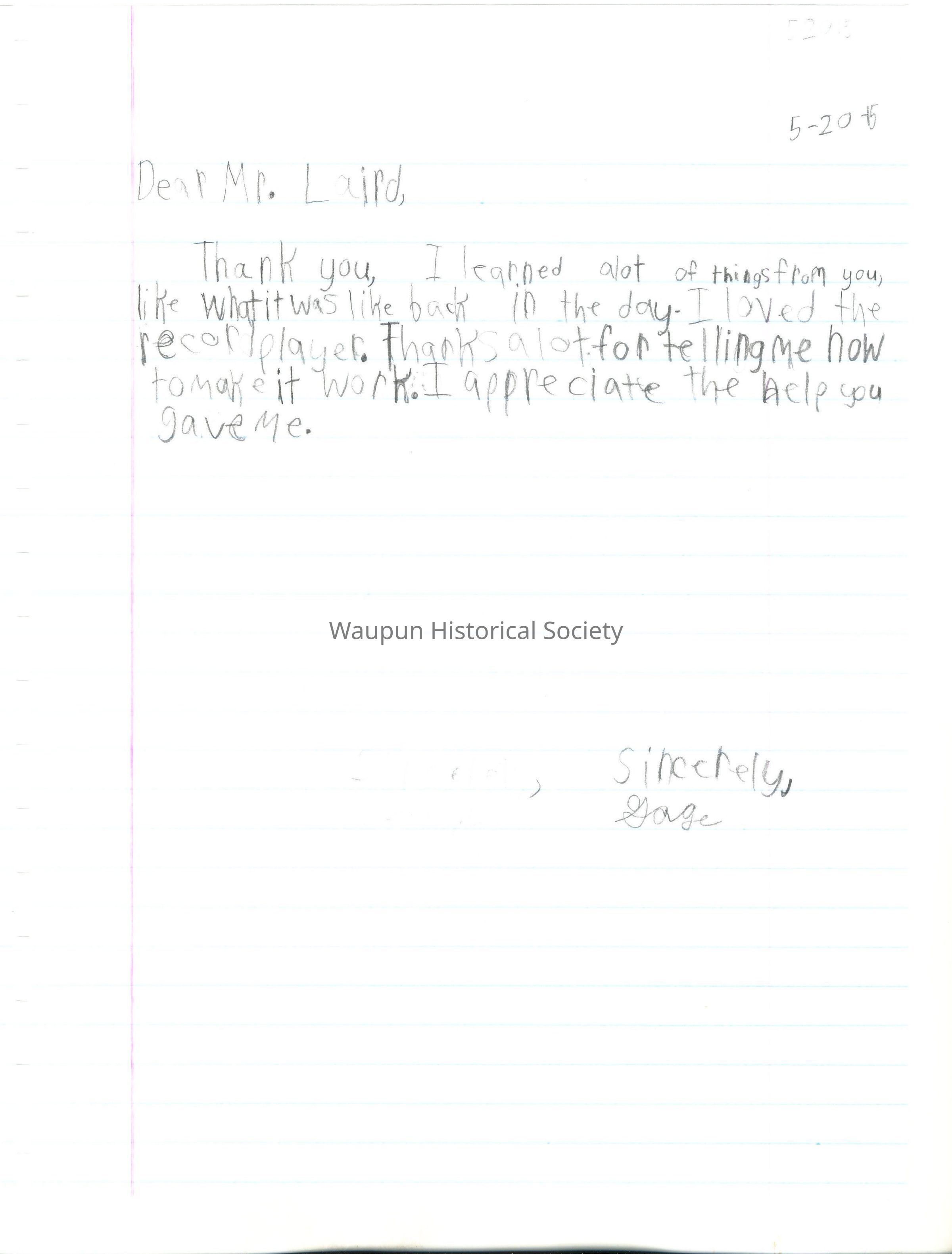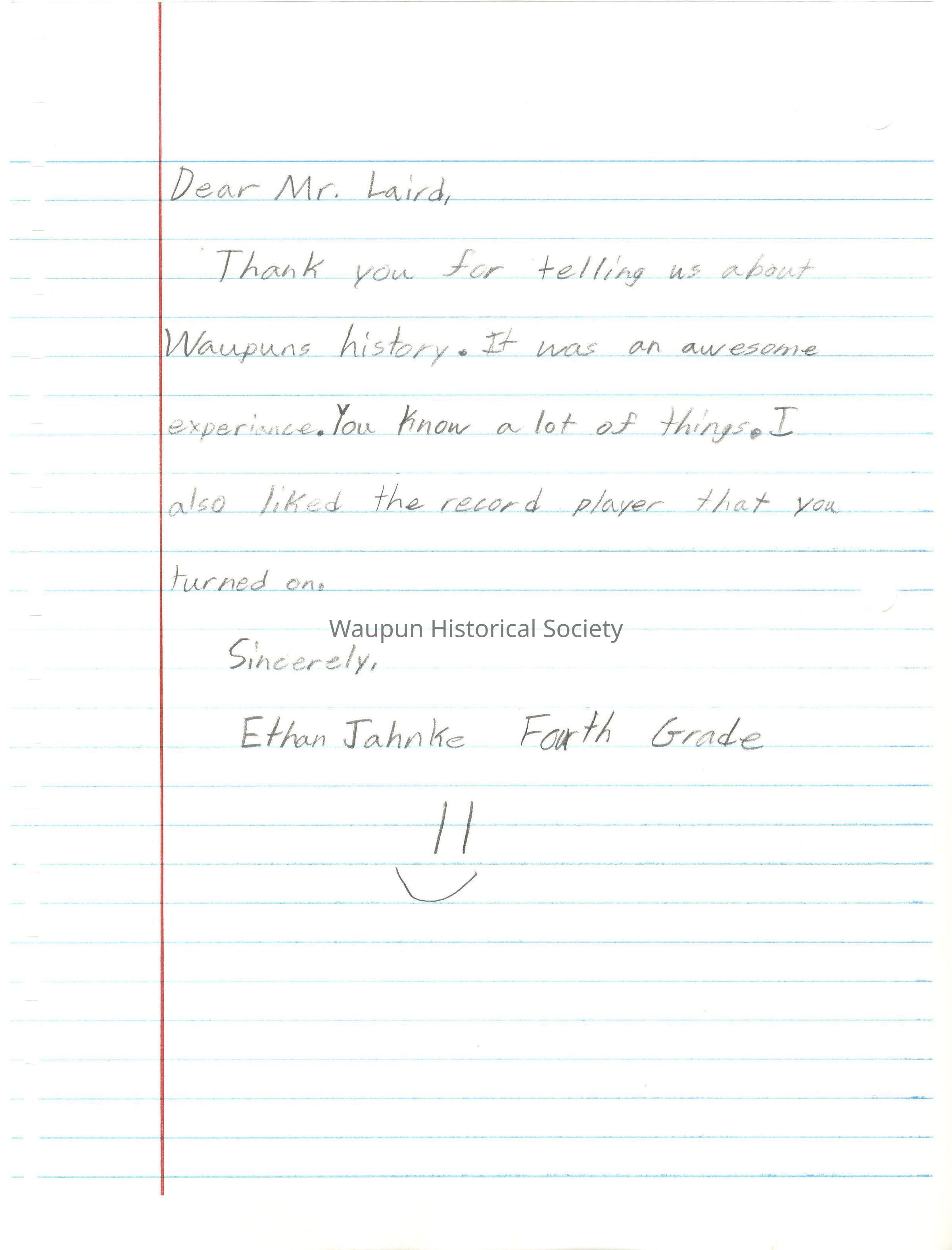 Thank you for telling us about Waupuns history. It was an awesome experiance. You know a lot of things. I also liked the record player that you turned on.