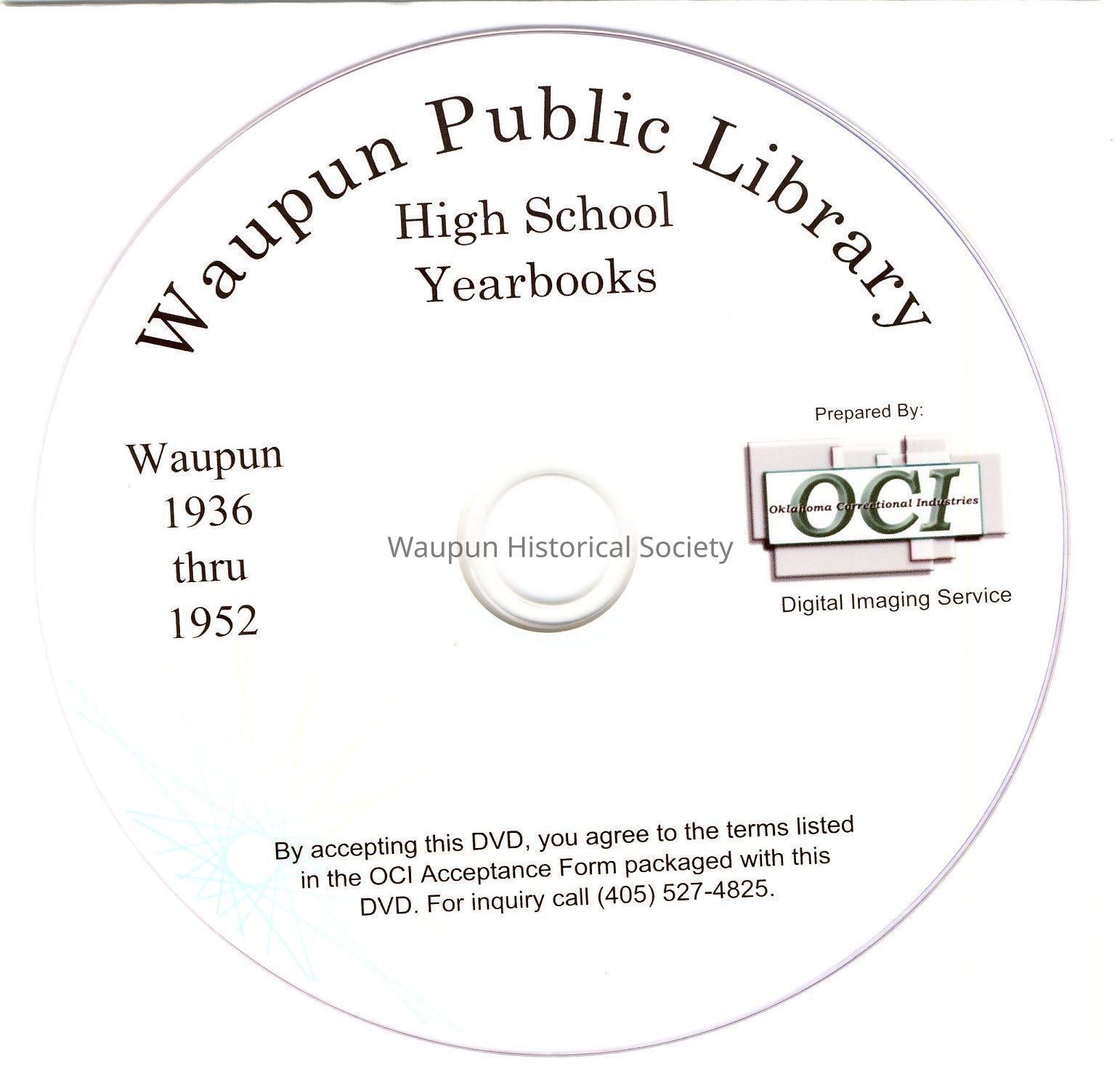 Digital Video Disc of the Waupun High School Yearbooks, 1936 thru 1952 made by Pam Garcia at the Waupun Public Library and donated to the Waupun Historical Museum.Acquisition