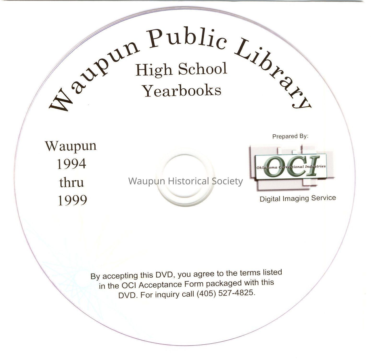 Digital Video Disc of the Waupun High School Yearbooks, 1994 thru 1999 made by Pam Garcia at the Waupun Public Library and donated to the Waupun Historical Museum.Acquisition