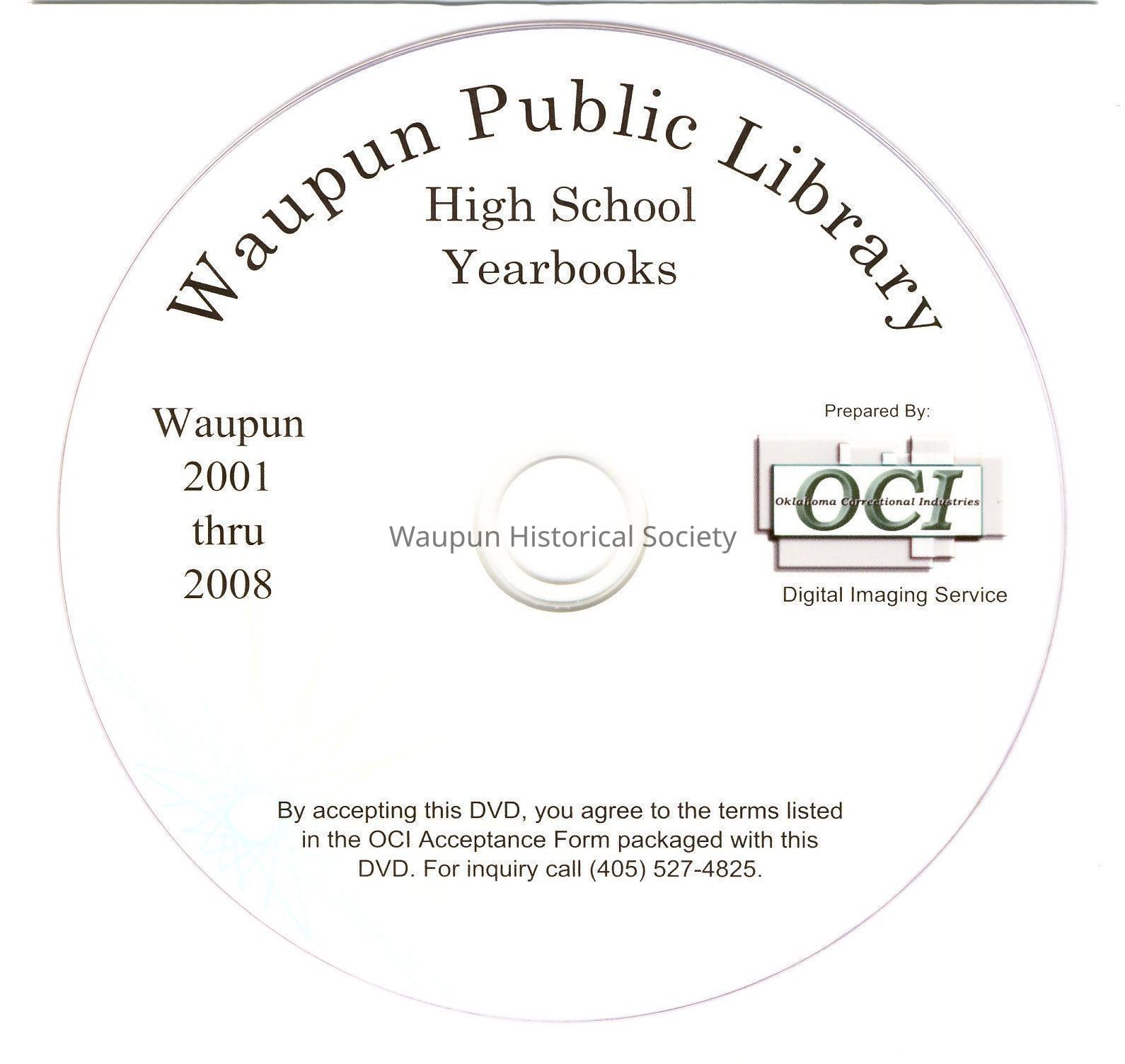Digital Video Disc of the Waupun High School Yearbooks, 2001 thru 2008 made by Pam Garcia at the Waupun Public Library and donated to the Waupun Historical Museum.Acquisition