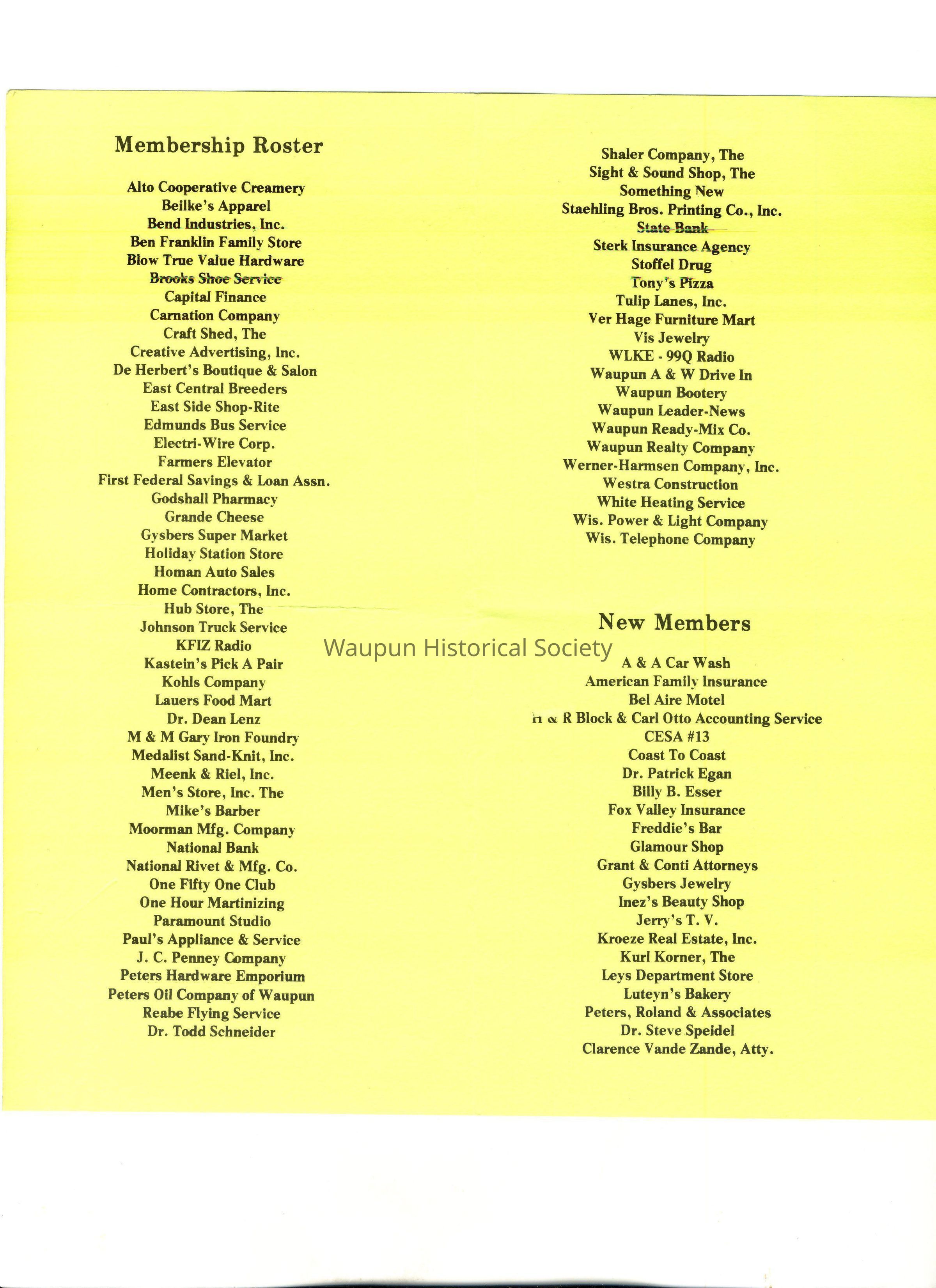 Waupun Chamber of Commerce Membership Roster, 1978-79Entry/Object ID
