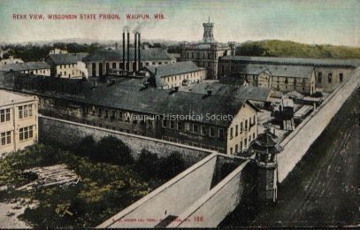 Postcard, Corrections, Wisconsin State Prison, Rear View, #186. A collection of souvenir postcards, circa 1930 featuring the Waupun State Prison. This postcard was printed by the E.C. Kropp Co. of Milwaukee. The photos are "courtesy of the Milwaukee Journal."Acquisition
