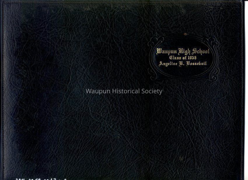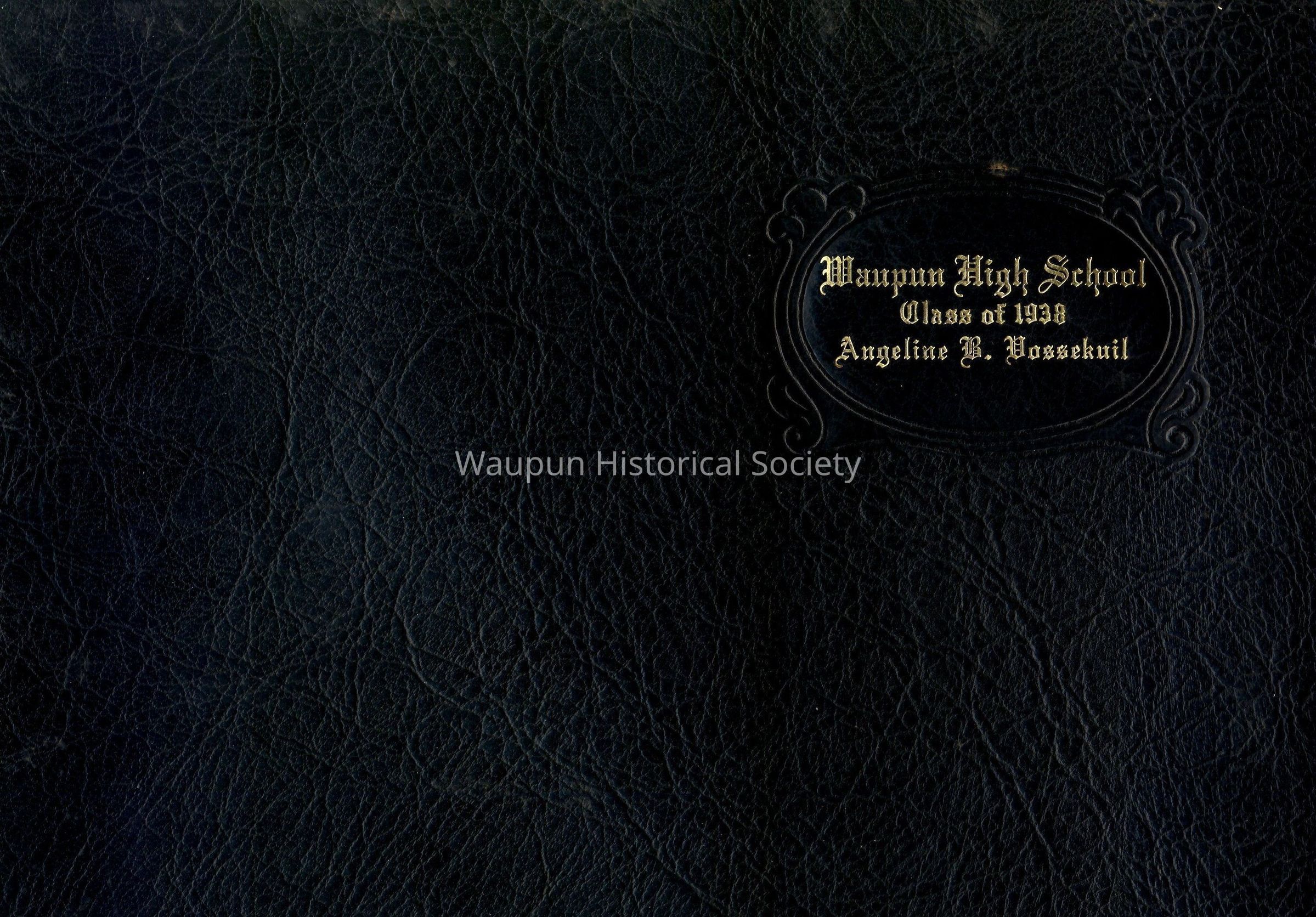 It is in a black leather protector and has Embossed in Gold - Waupun High School Class of 1938 Angeline B. VossekuilAcquisition