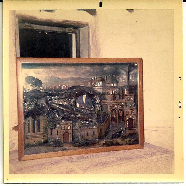 Photos that Jane Redman included with the Diorama. Date on the margin indicates Nov. 1971. In the second photo the crosses were written on the photo. They appear during the operation of the diorama.Acquisition