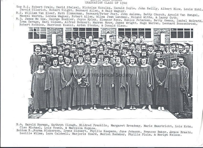 R.3: James McGee, George Boehler, Joyce Hyink, Eleanor Rens, Eunice Petersen, Betty Owens, Isabel McGrath, Irma Savage, Earl Glewen, Alfred Bohnert, Warren Mouw, James Wright, Hugo Warren, Leonard Bossenbroek, Robert Robbins, Harrison Kuenzi, Arden Storke, Donald Olson.