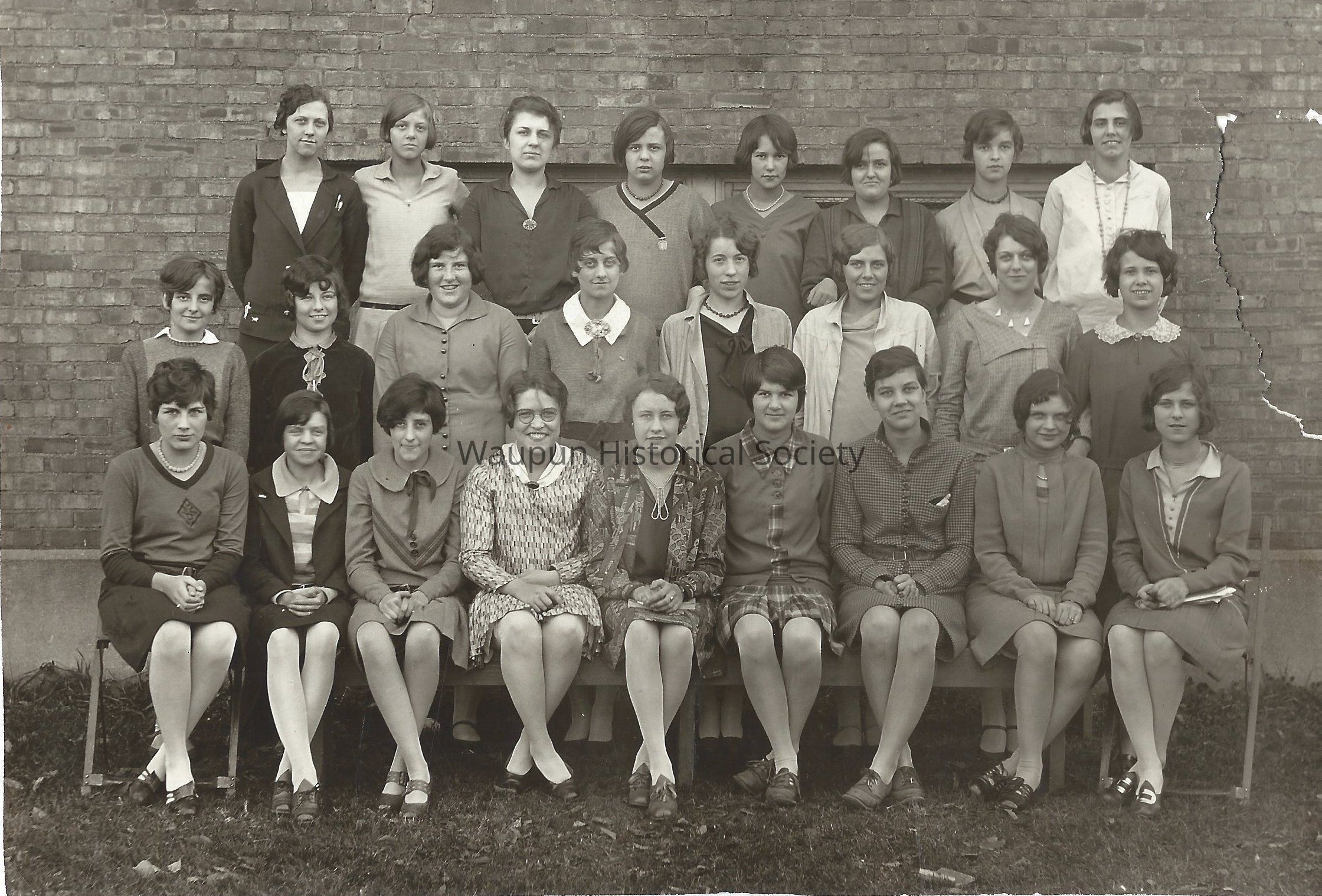 Bottom row, L to R: Romona Stelsel, Eleanor Glascoff, Gean Clark, Vyrna Sherwood, Johanna Staeling, Evelyn Radtke, Evelyn Eagleburger, Viola Diefenbach.Acquisition