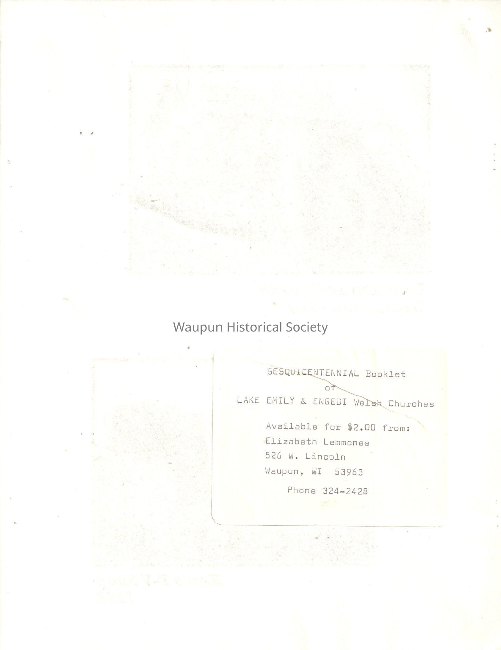 SESQUICENTENNIAL Booklet of LAKE EMILY & ENGEDI Welsh Churches
