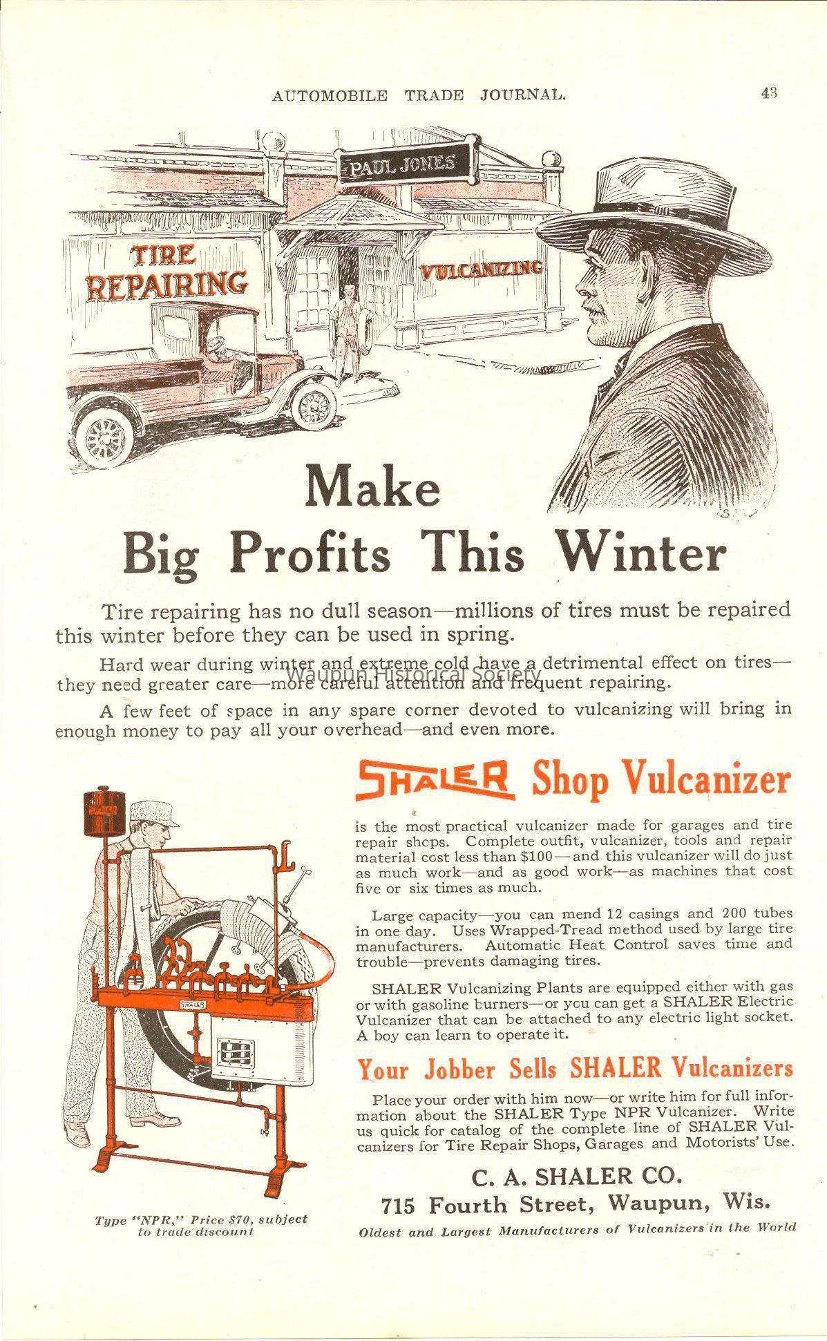 Shaler, Ad on page 43 of the" Automobile Trade Journal" for the C. A. Shaler Co. and the Shaler Shop Vulcanizer.