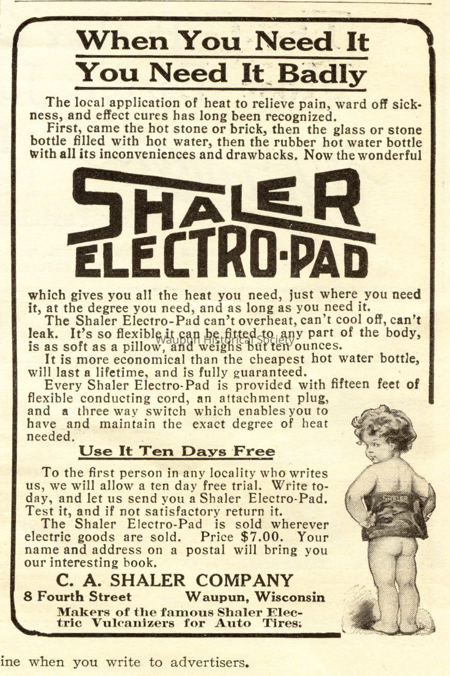 The Shaler Electro-Pad is sold wherever electric goods are sold.