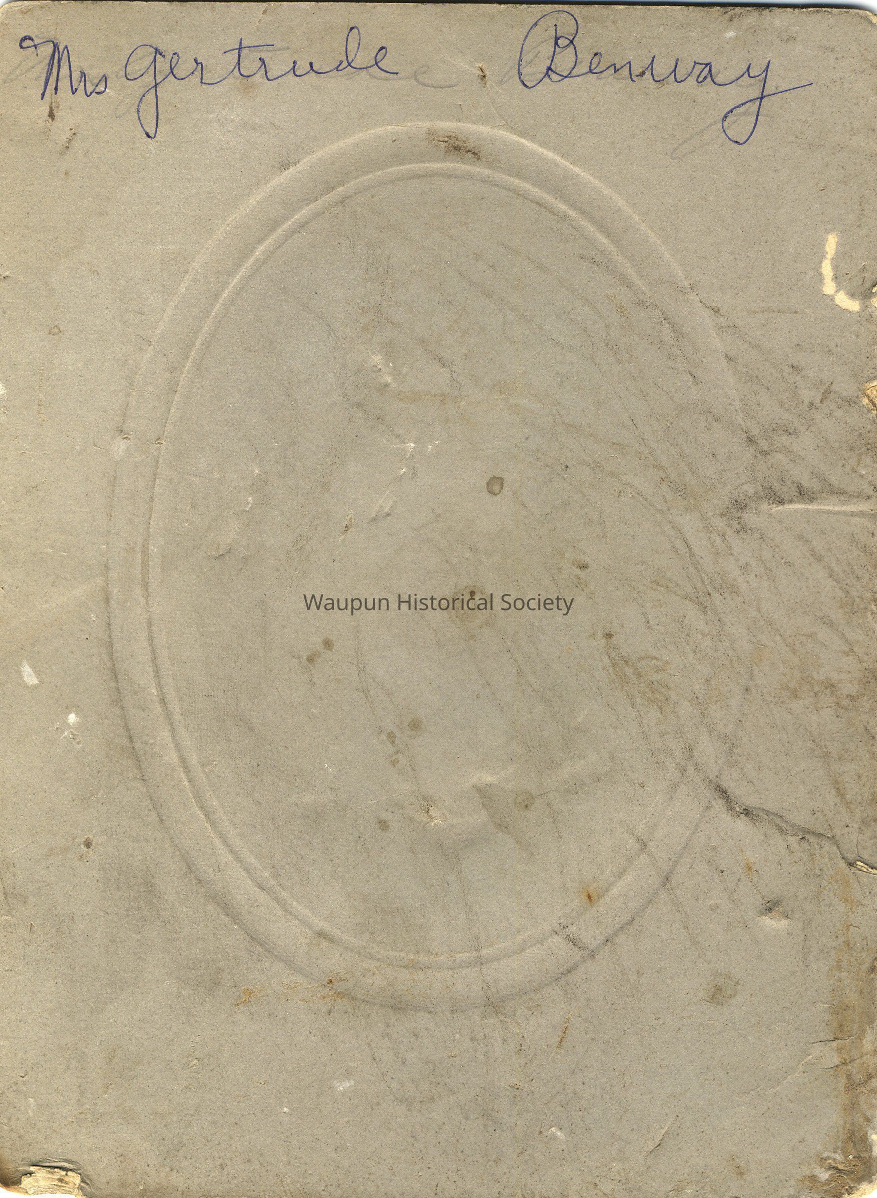 Portrait, As indicated on back, we believe this to be Mrs. Gertrude Benway.Acquisition