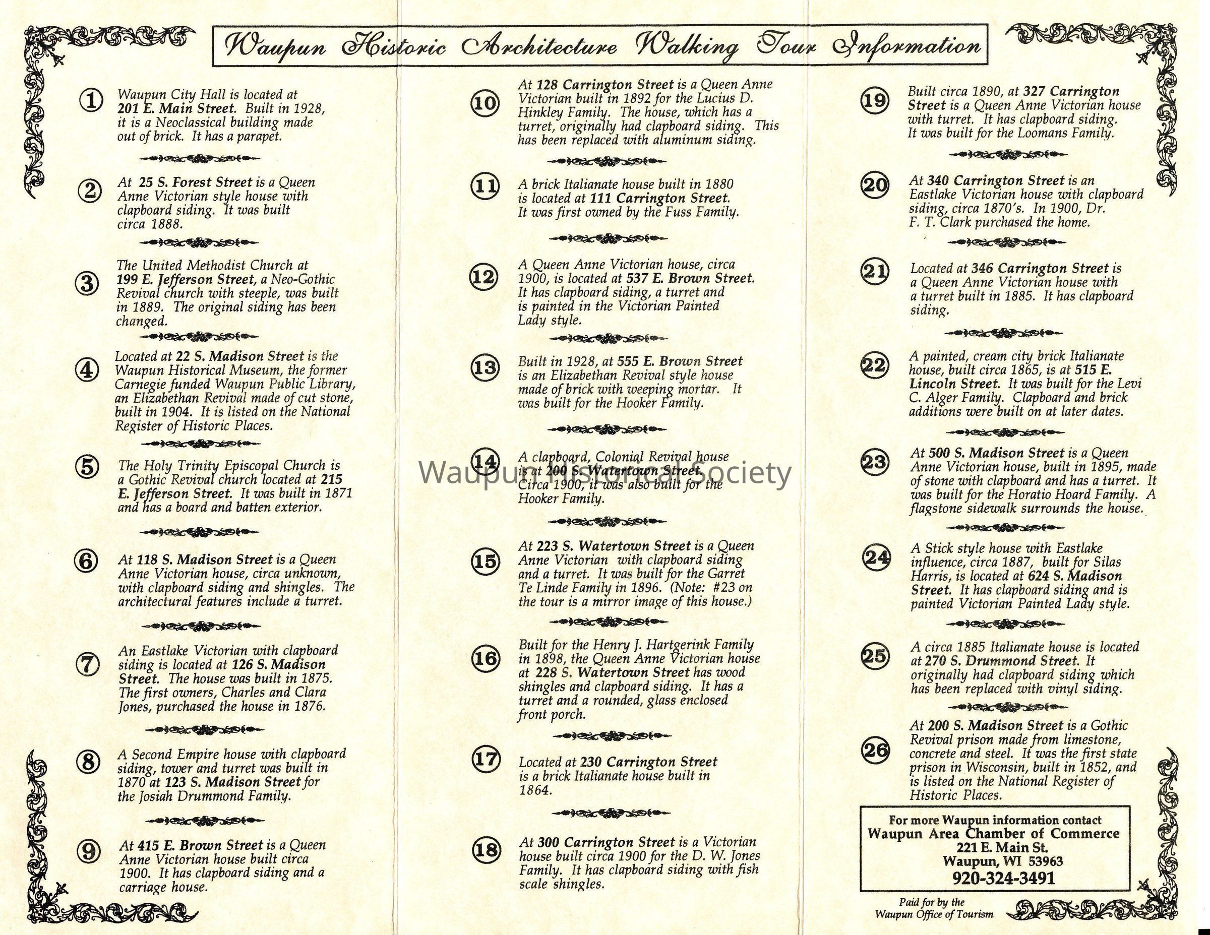 Brochure, Historic Architecture Walking Tour of WaupunEntry/Object ID