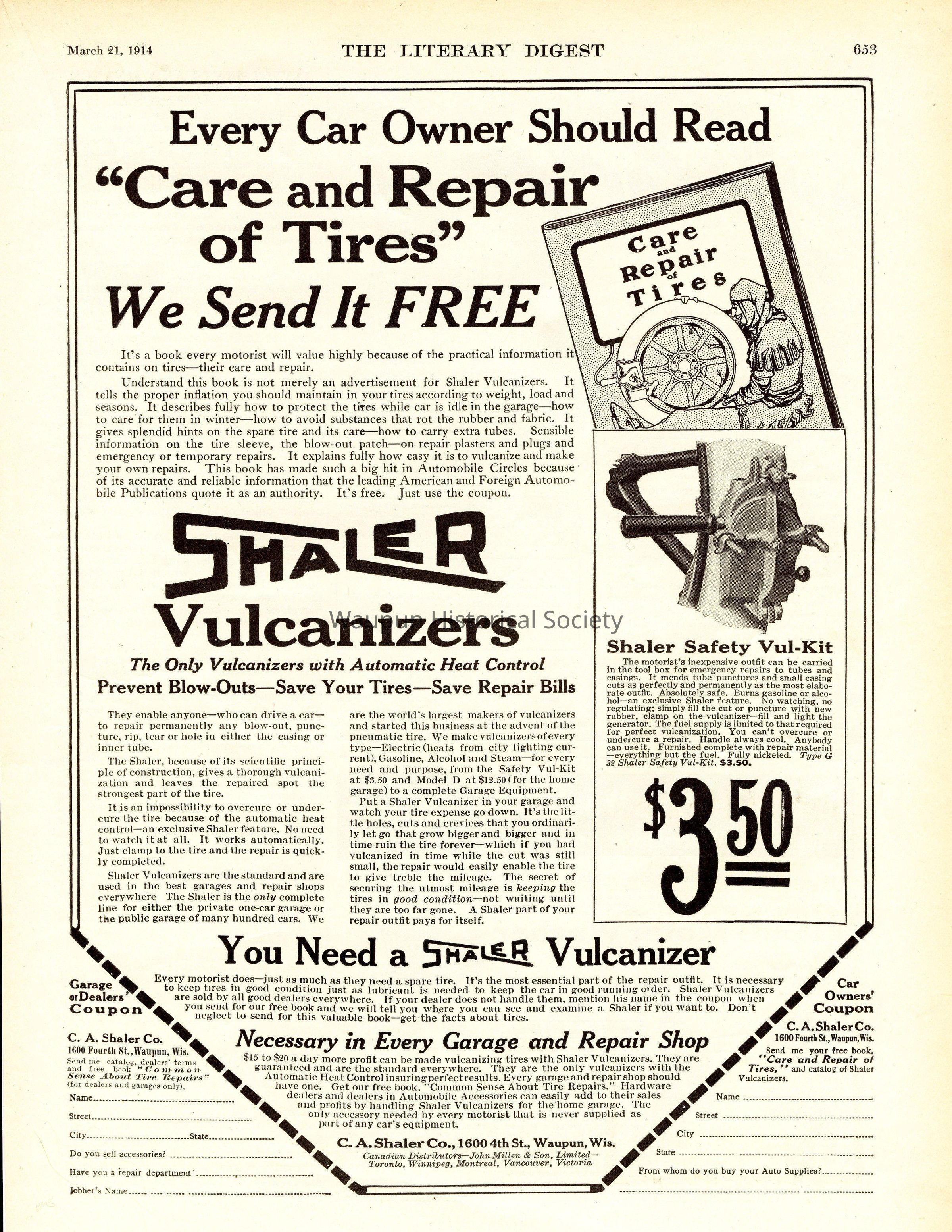 Advertisement, Shaler Vulcanizers, The Literary Digest, March 1914Entry/Object ID