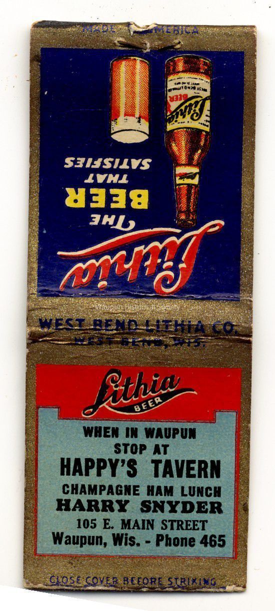 Happy's Tavern Matchbook. Notice that the phone number was before the conversion to dial.